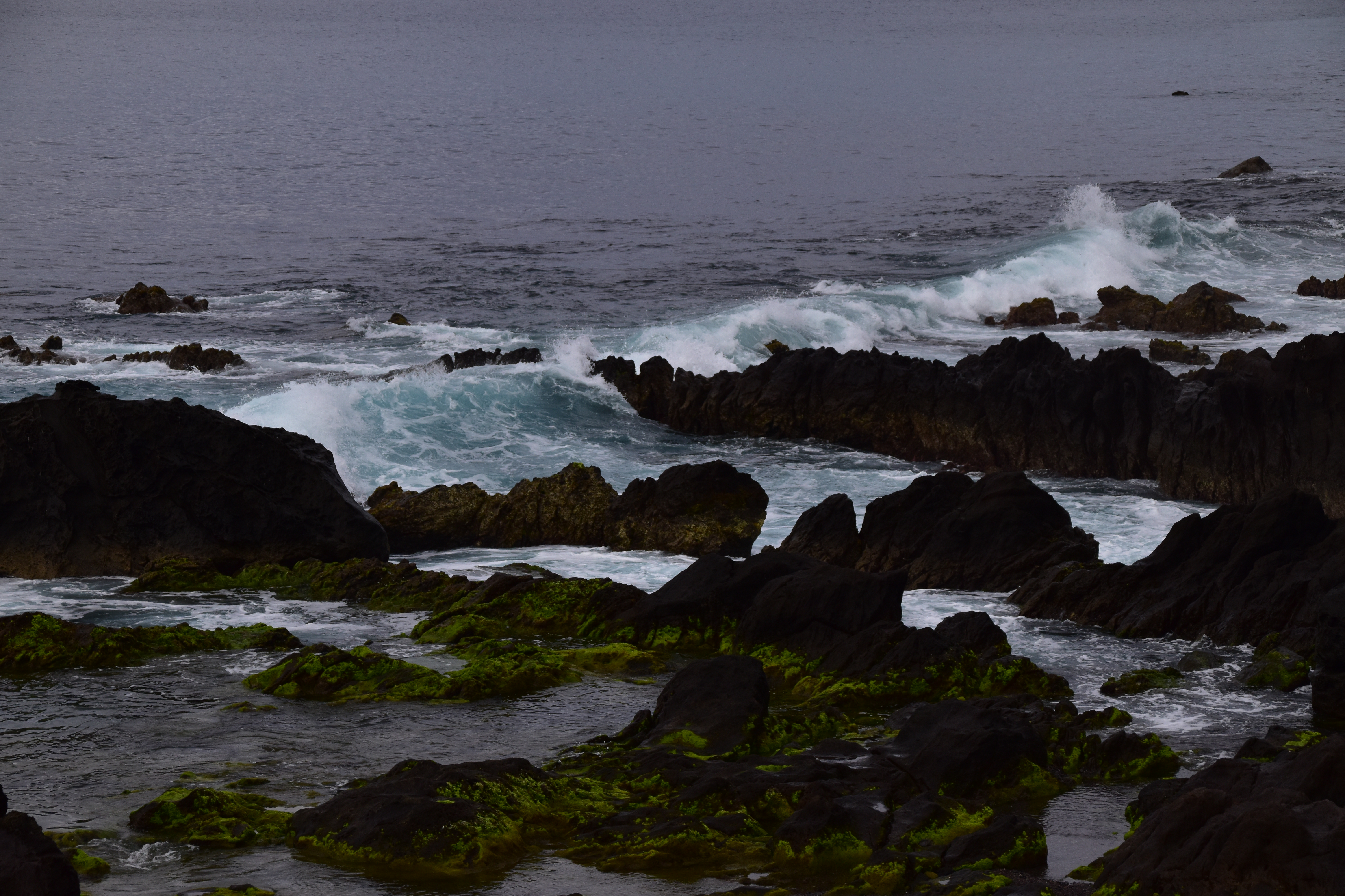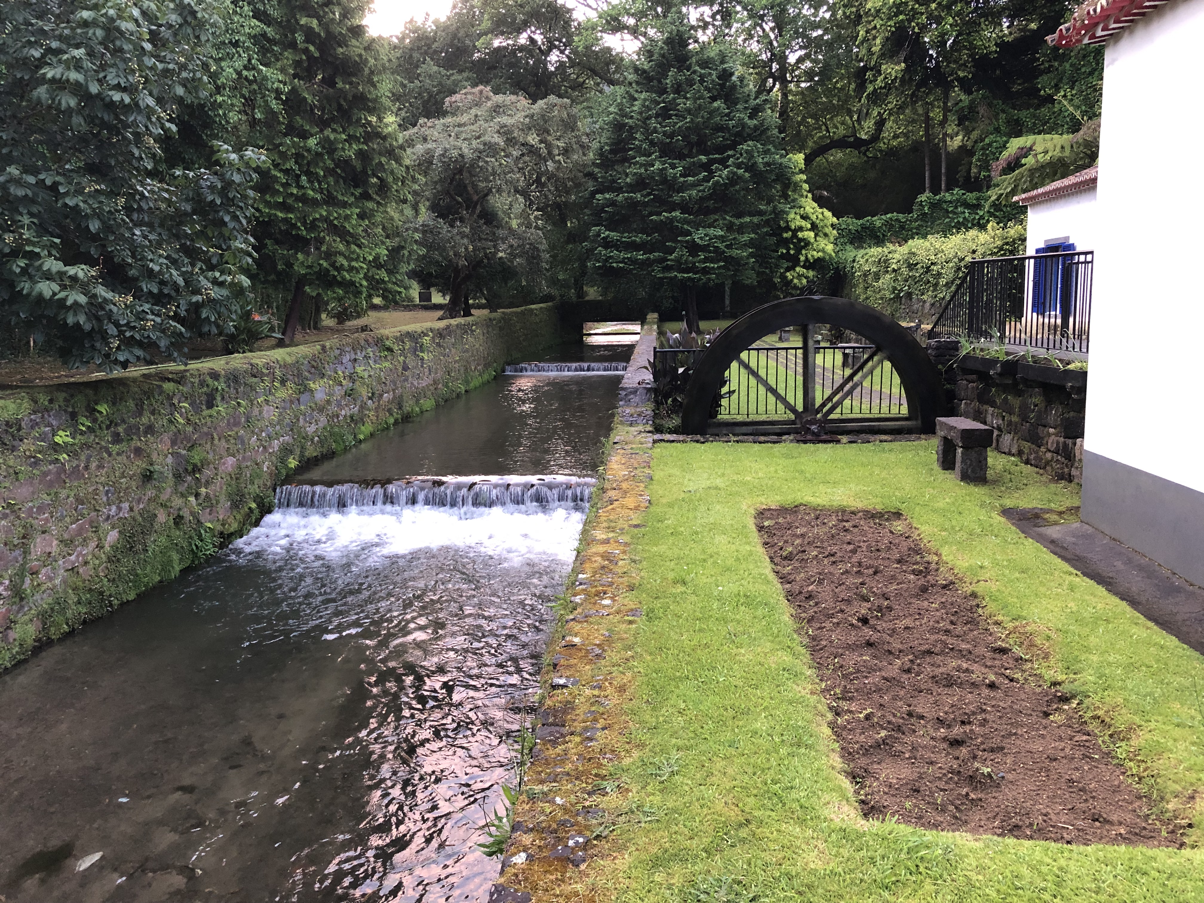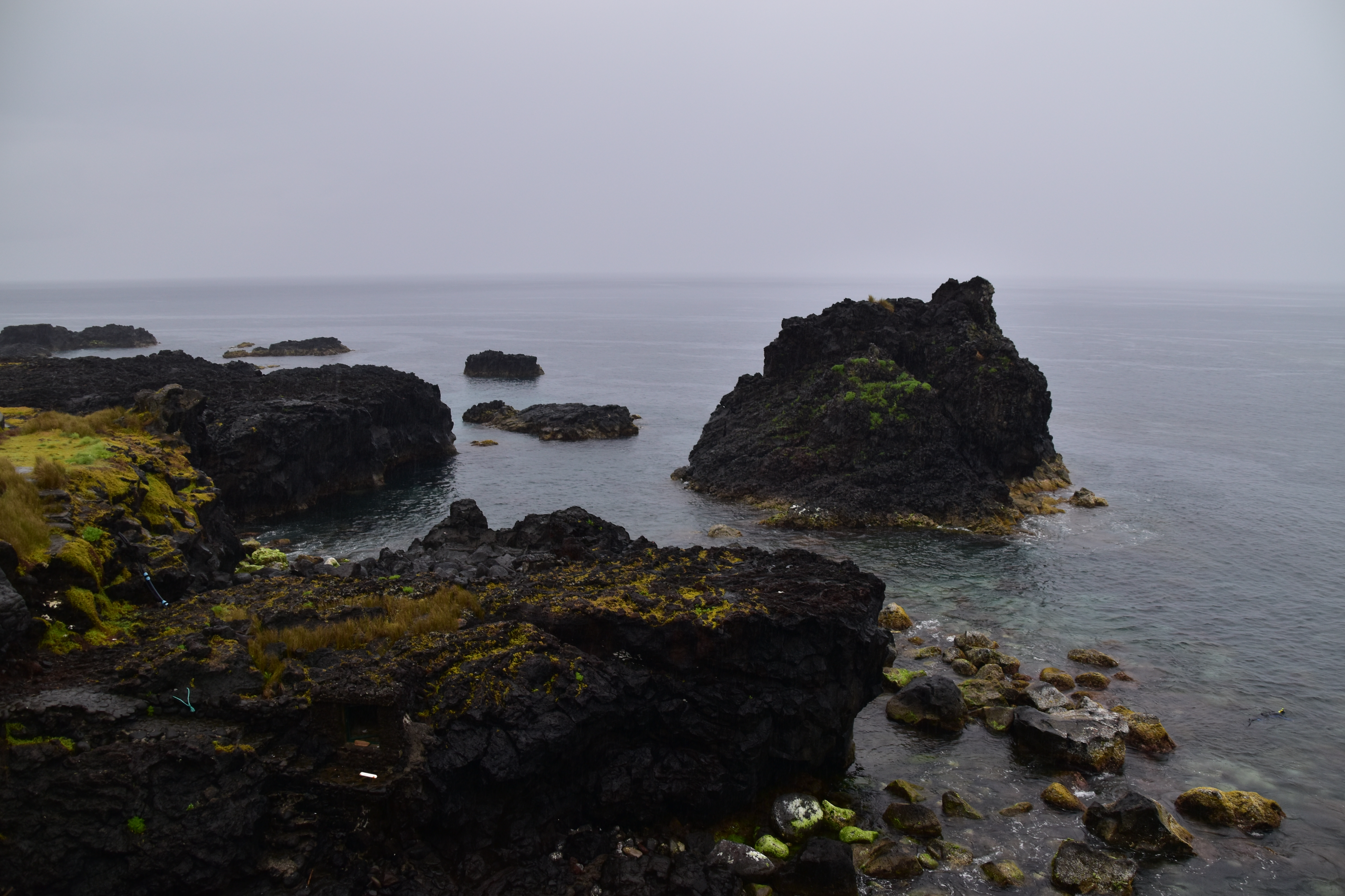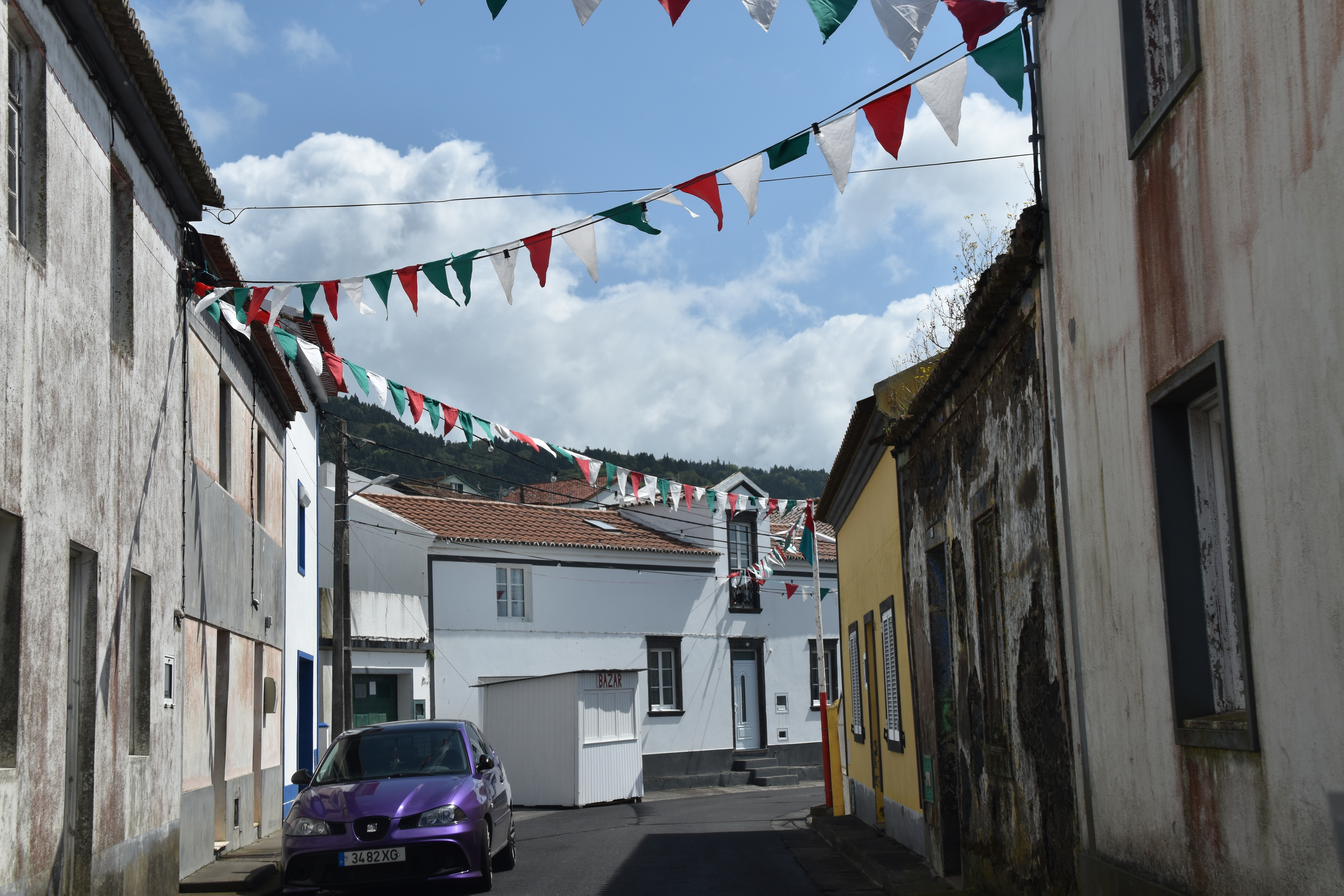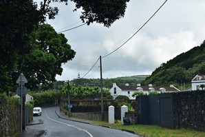 Pour éviter de faire escale en Europe et en quelque sorte revenir sur nos pas vers Sao Miguel, nous avons pris des billets avec SATA pour faire: Montréal-Toronto-Ponta Delgada. Toutefois, la portion Montréal-Toronto-Montréal est (malheureusement) opérée par WestJet: quelque semaines avant notre départ, la compagnie décide de ne plus conserver qu'un seul vol par jour sur ce trajet et on se retrouve avec une escale de 20 heures à Toronto avant de revenir à Montréal! Nous décidons donc d'acheter un vol séparé, Toronto-Montréal, avec Air Canada. À l'aller, le changement d'heure ne nous laisse qu'1h40 d'escale à Toronto, et comme WestJet refuse de nous fournir nos cartes d'embarquement pour le vol Toronto-Ponta Delgada, nous devons courir d'une porte à l'autre dans YYZ pour arriver à temps en espérant qu'on nous accepte sans nos cartes. Nous sommes chanceux: le sympathique personnel de SATA à la porte d'embarquement est au courant qu'il y a des passagers de Montréal, avec WestJet, qui arrivent tard et n'ont pas leurs cartes d'embarquement: ils nous impriment ça en un temps record et hop! nous quittons pour Ponta Delgada, sur l'île de Sao Miguel. Partis de la maison, à Montréal, à 13h30 le 25 mai, nous atterissons à 6h40 am le 26 mai. Tout va rondement à l'arrivée: nous scannons nous-mêmes nos passeports, une petite photo, le monsieur nous met une étampe et hop! nous voilà dehors. Nous mettons quelques minutes à comprendre que notre loueur de voiture squatte en fait un kiosque anonyme dans le stationnement extérieur, à quelques centaine de mètres. À 7h30 nous sommes assis dans la Volkswagen Taigo bleu nuit, 18 000 km, propre, trop propre: après une journée de route, elle sera déjà sera déjà plein de terre et de poussière et de miettes de massa!!Il bruine un peu mais il ne fait pas froid. Pour le moment, comme nous sommes encore assez en forme, nous décidons d'allonger un peu notre trajet car il ne faut que 45 minutes pour rallier Furnas, où se trouve notre hôtel pour les quatre prochaines nuits, mais la chambre ne sera pas prête avant 15h! Nous longeons donc le bord de la mer, en passant par Lagoa, Caloura, Agua de Pau, Vila Franca do Campo.