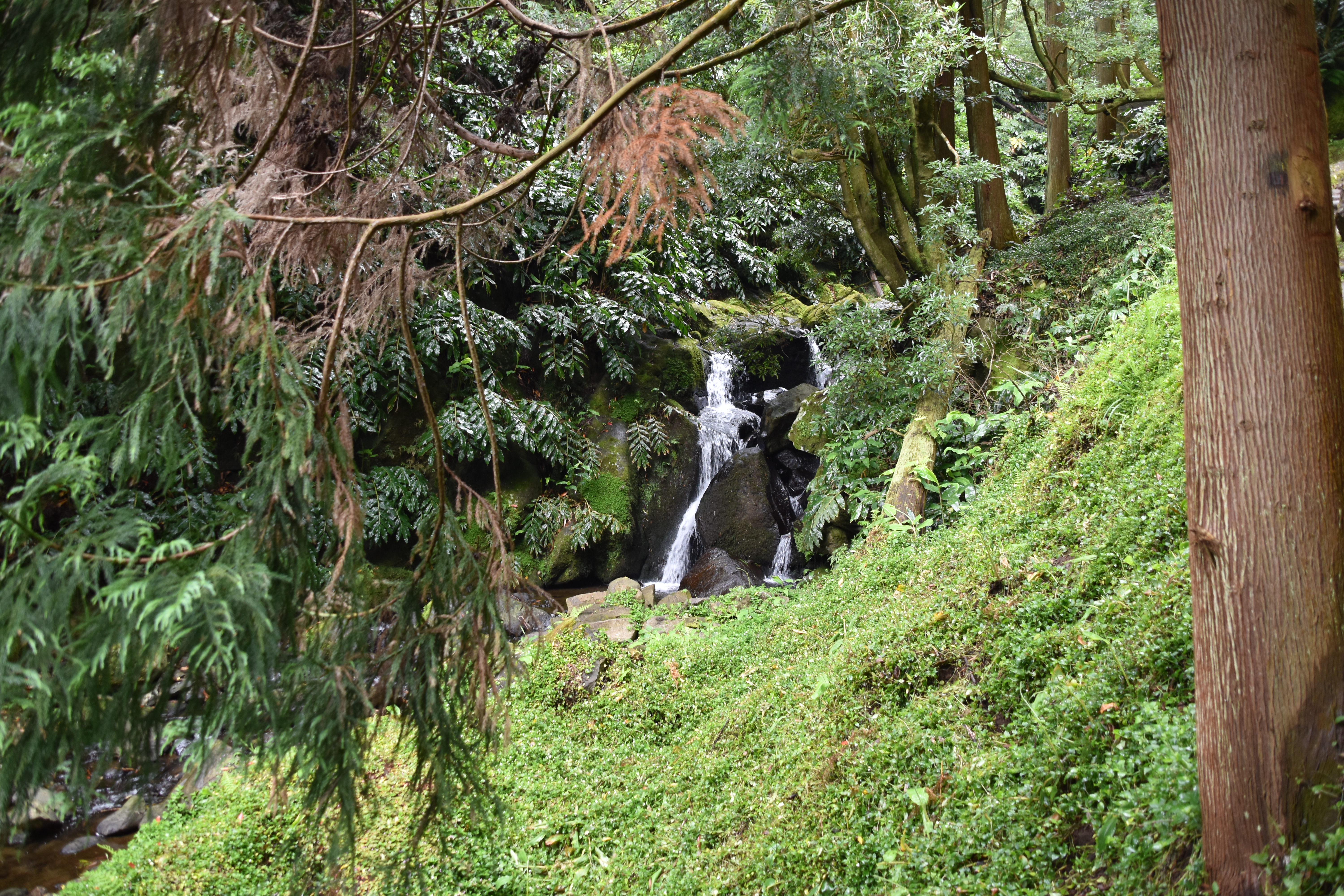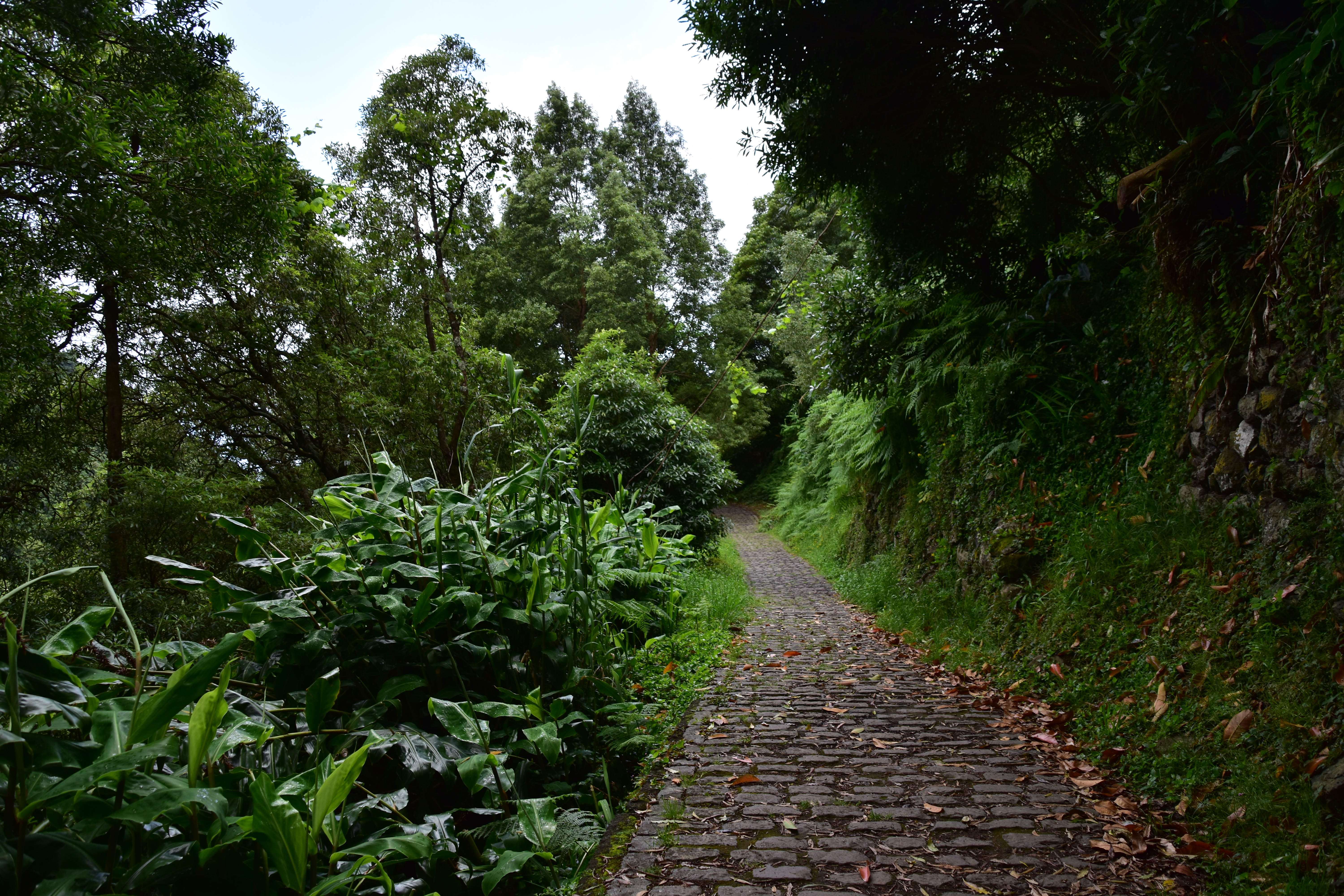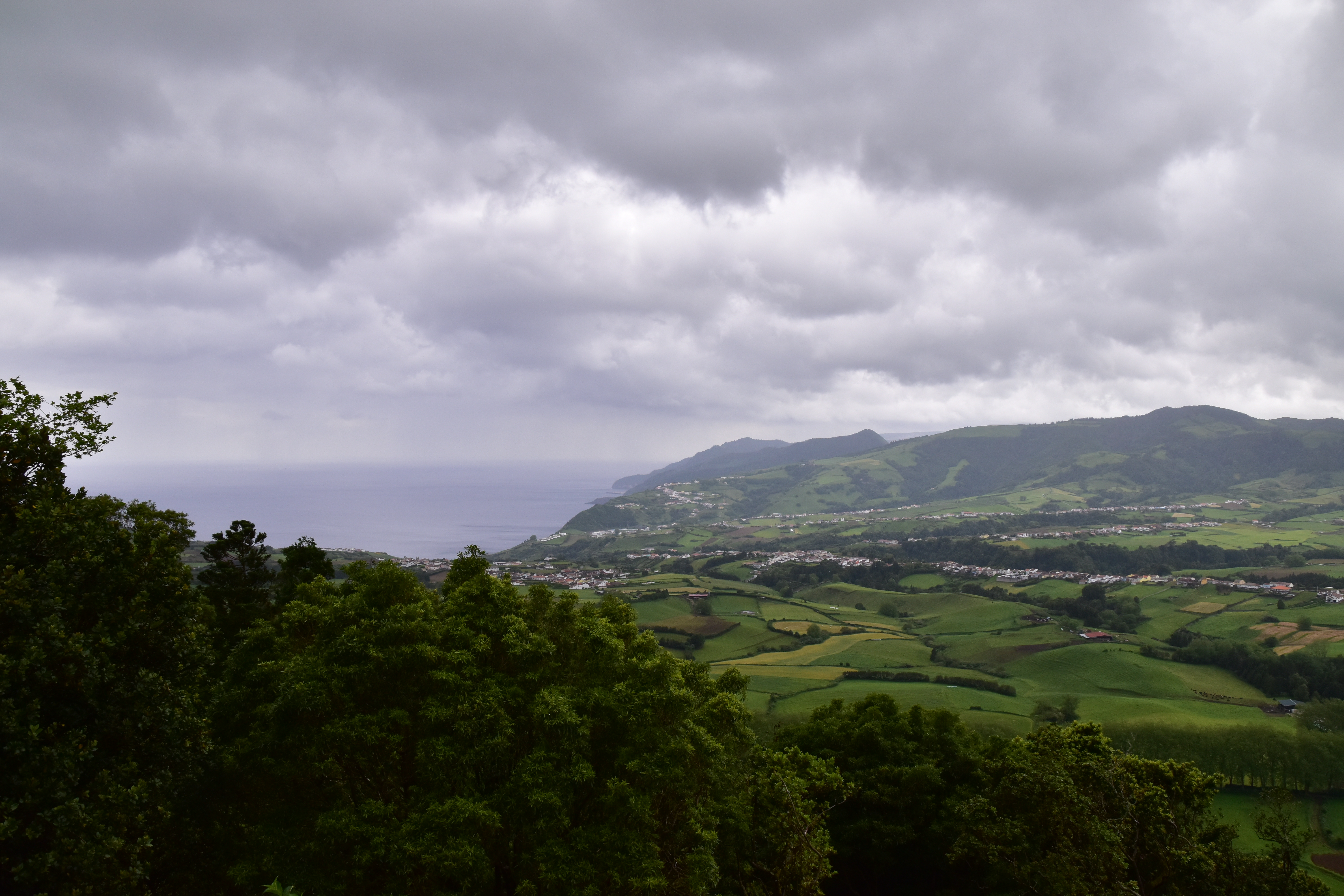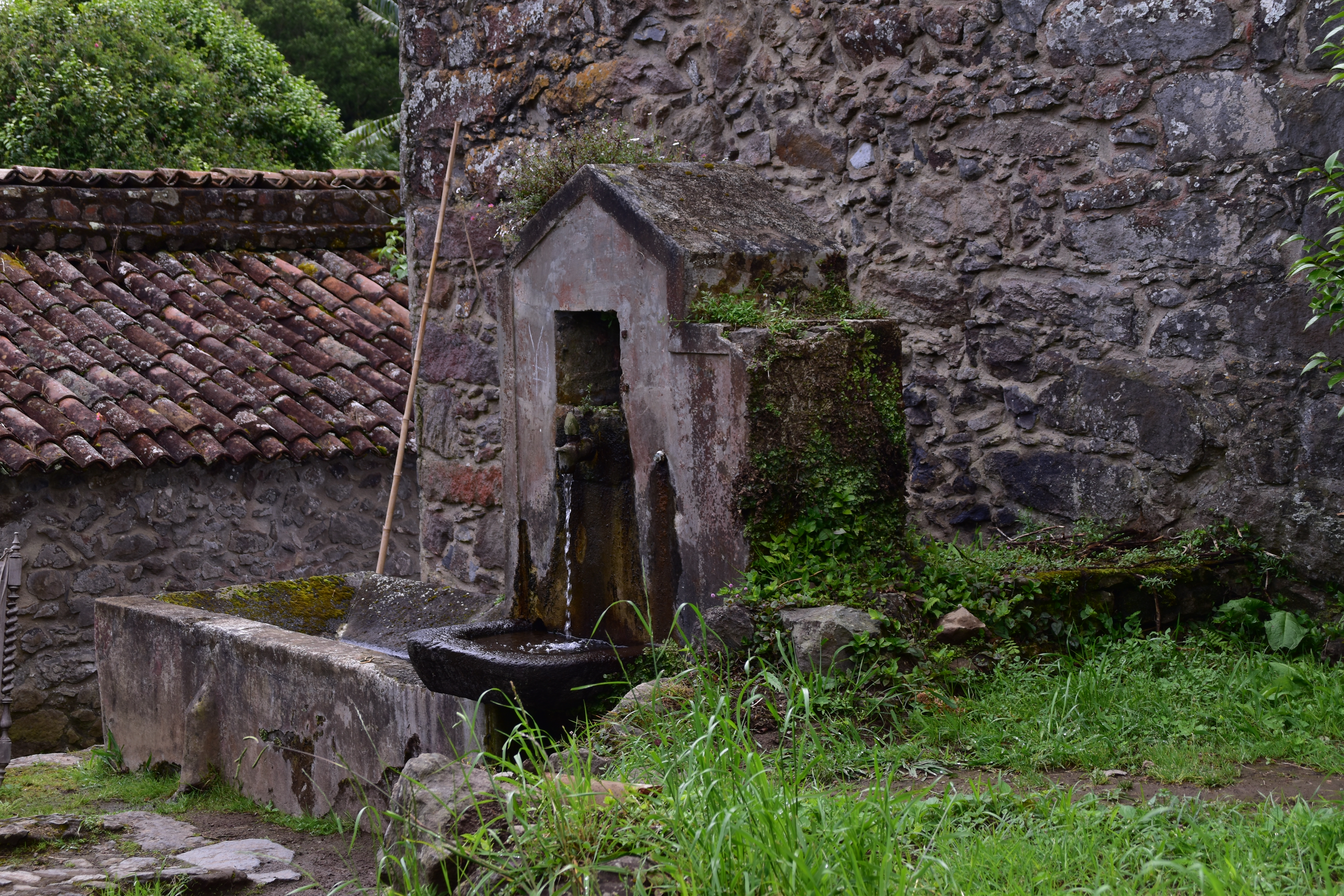 En quittant Faial da terra, nous empruntons une petite route qui mène vers Sanguinho, puis après avoir rejoint la 1a, nous voyons une bifurcation sur la gauche qui indique: rota da tronqueira, serra de Tronqueira. La route n'est pas pavée, et ne permet pas de rencontrer, mais semble en bon état: petite recherche rapido sur le portable, il semble que ce soit une route super intéressante, et nous ne cherchons pas plus loin et l'empruntons. Le gravier est bien gratté et la route se fait bien avec la voiture, même si à quelques endroits il y a de bonnes crevasses causées par les fortes pluies. Néanmoins nous persévérons, car la route qui monte dans la serra offre de bien belles vues pendant les 17 km entre Agua Retorta et Nordeste. À Nordeste nous faisons quelques emplettes et ne profitons pas assez longuement de cette belle petite ville tranquille. Le retour sur Furnas se fait rondement, car les distances ne sont pas grandes, sur une belle route qui sinue à travers champs.