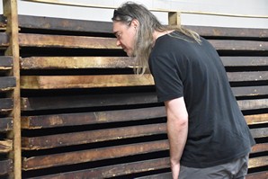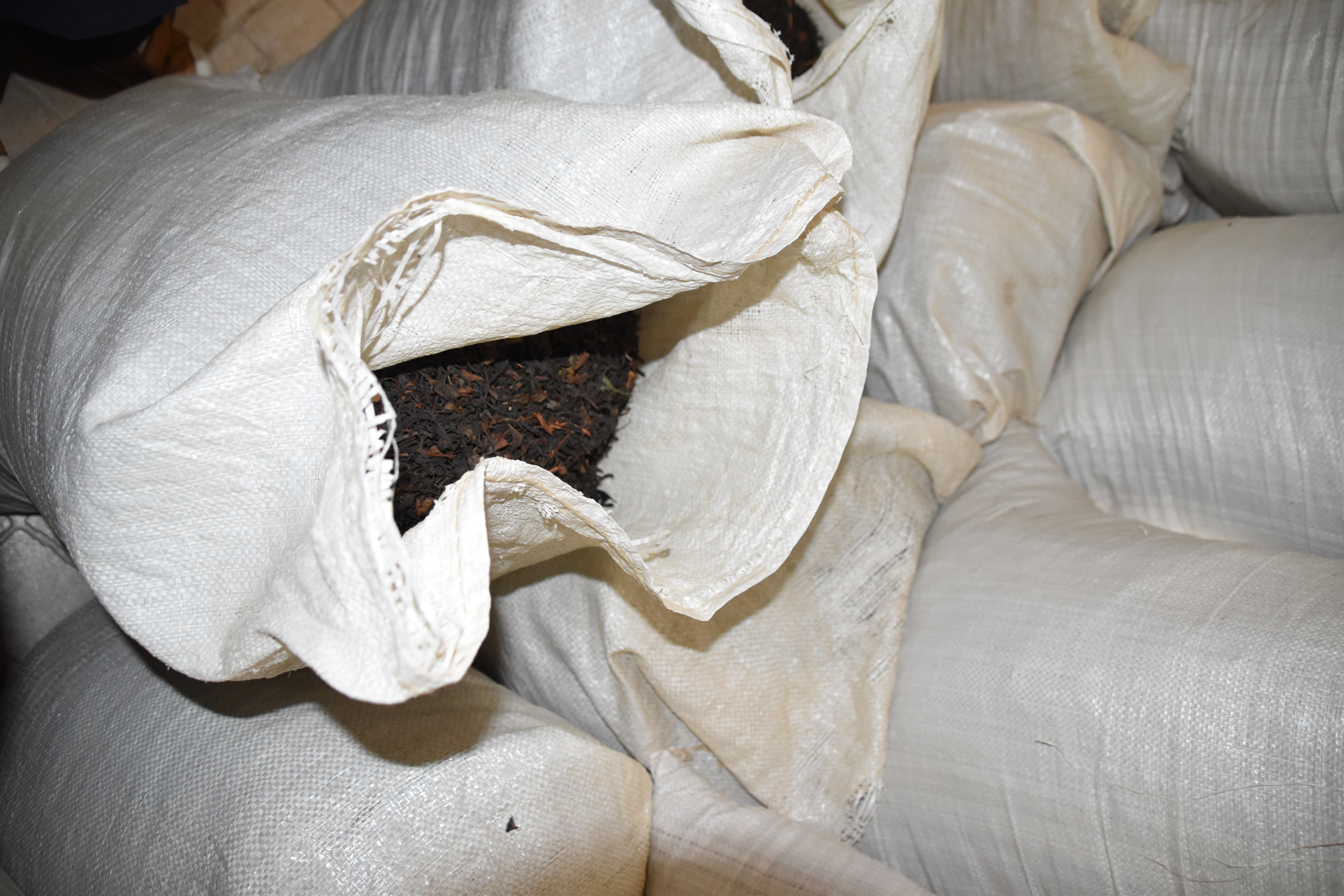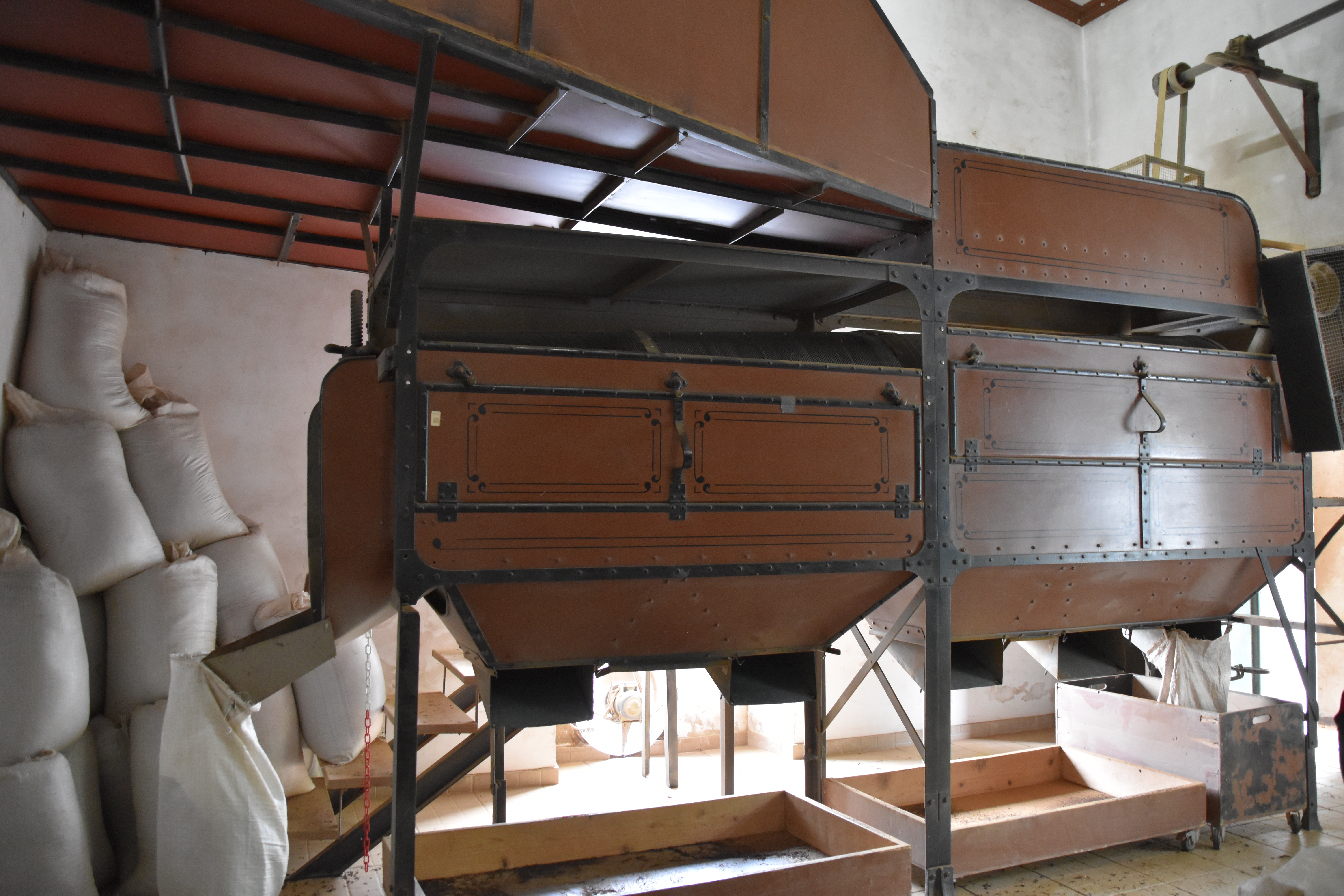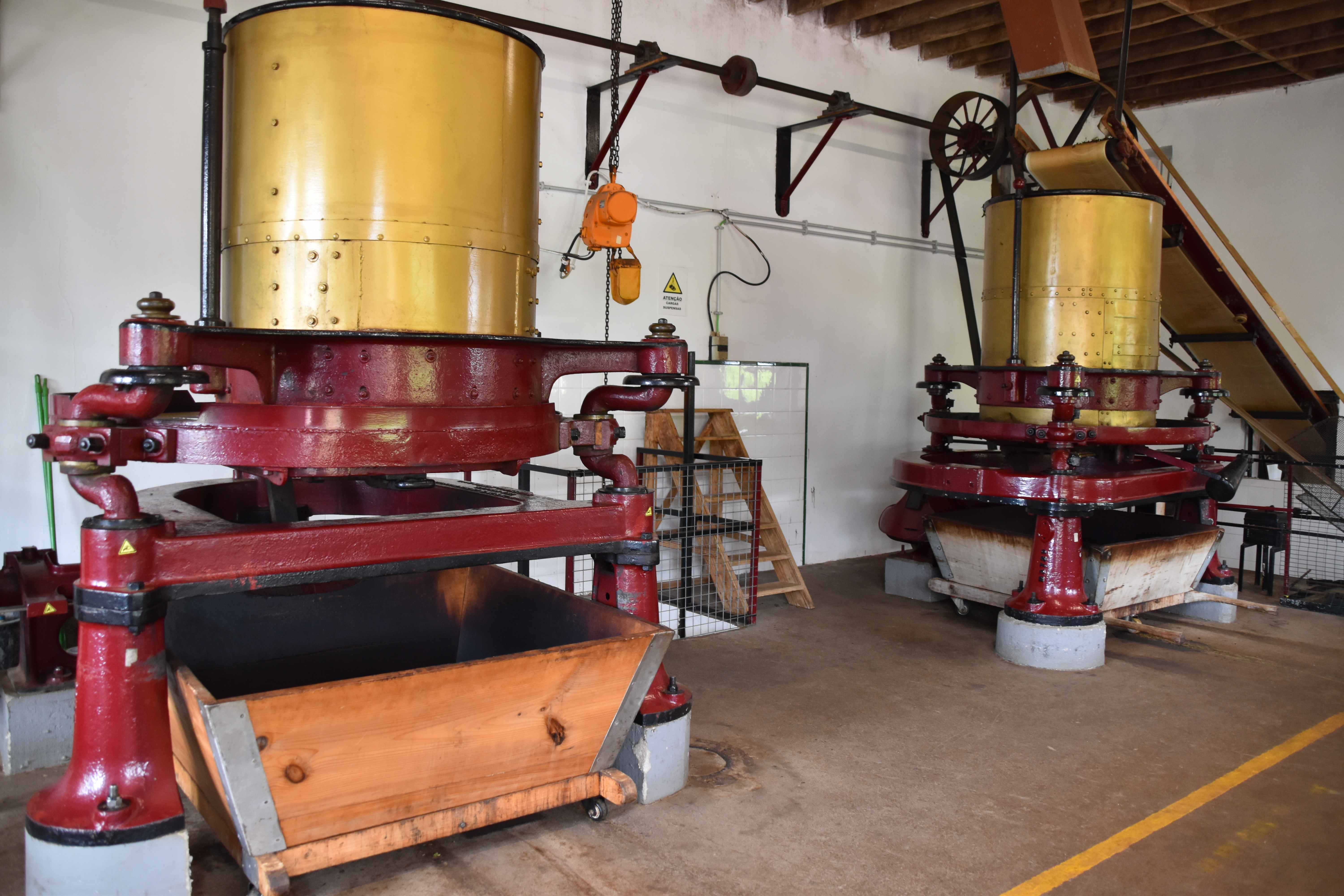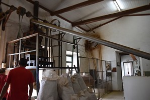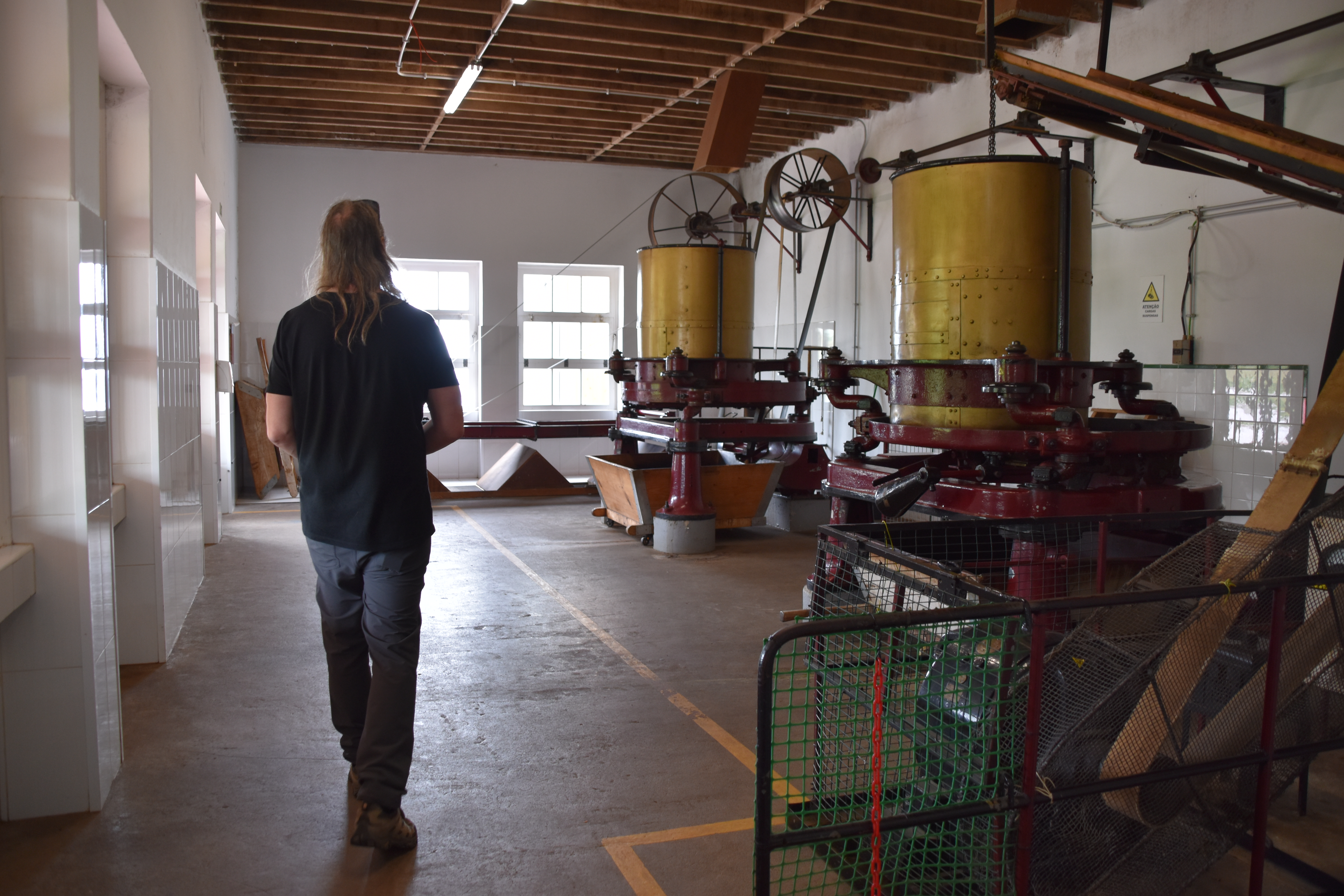 Nous continuons notre route pour rejoindre la plantation de thé Cha Gorreana à Sao Bras. Il y a pas mal de voitures dans le stationnement, en fait il y a peu de stationnement, mais nous ne sommes pas nombreux à visiter les installations de la fabrique. Bien qu'elle ne soit pas guidée, la visite est très intéressante avec le petit dépliant explicatif qu'on nous fournit en français. Les employés travaillent sous nos yeux sur la machinerie que nous pouvons voir en action et nous sommes bien impressionnés par l'ingénieux système de poulies qui permet de tout faire fonctionner en même temps sans perte d'énergie. Nous nous installons à une table sur le grand balcon pour boire plusieurs tasses de thé (dégustation gratuite) et manger un sandwich pendant qu'une bonne averse s'abat sur le site, amenant tout un nouveau lot de visiteurs! C'est ensuite sous un mini crachin que nous arpentons les champs de thé en face de la fabrique.