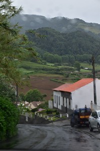 Nous quittons Furnas ce matin pour nous rendre à Ponta Delgada, et nous décidons de nous rallonger puisque le trajet ne prendrait qu'une quarantaine de minutes par la grande route: juste au nord est de Furnas, nous reprenons vers le miradouro do salto de cavalo et poursuivons sur cette petite route vers le nord. Nous traversons la route 1a pour nous rendre sur celle qui traverse les villages côtiers. Intéressés par le site du moulin abandonné Moinho do Felix, nous entamons le sentier, ne trouvons jamais le moulin mais plutôt une superbe cascade!