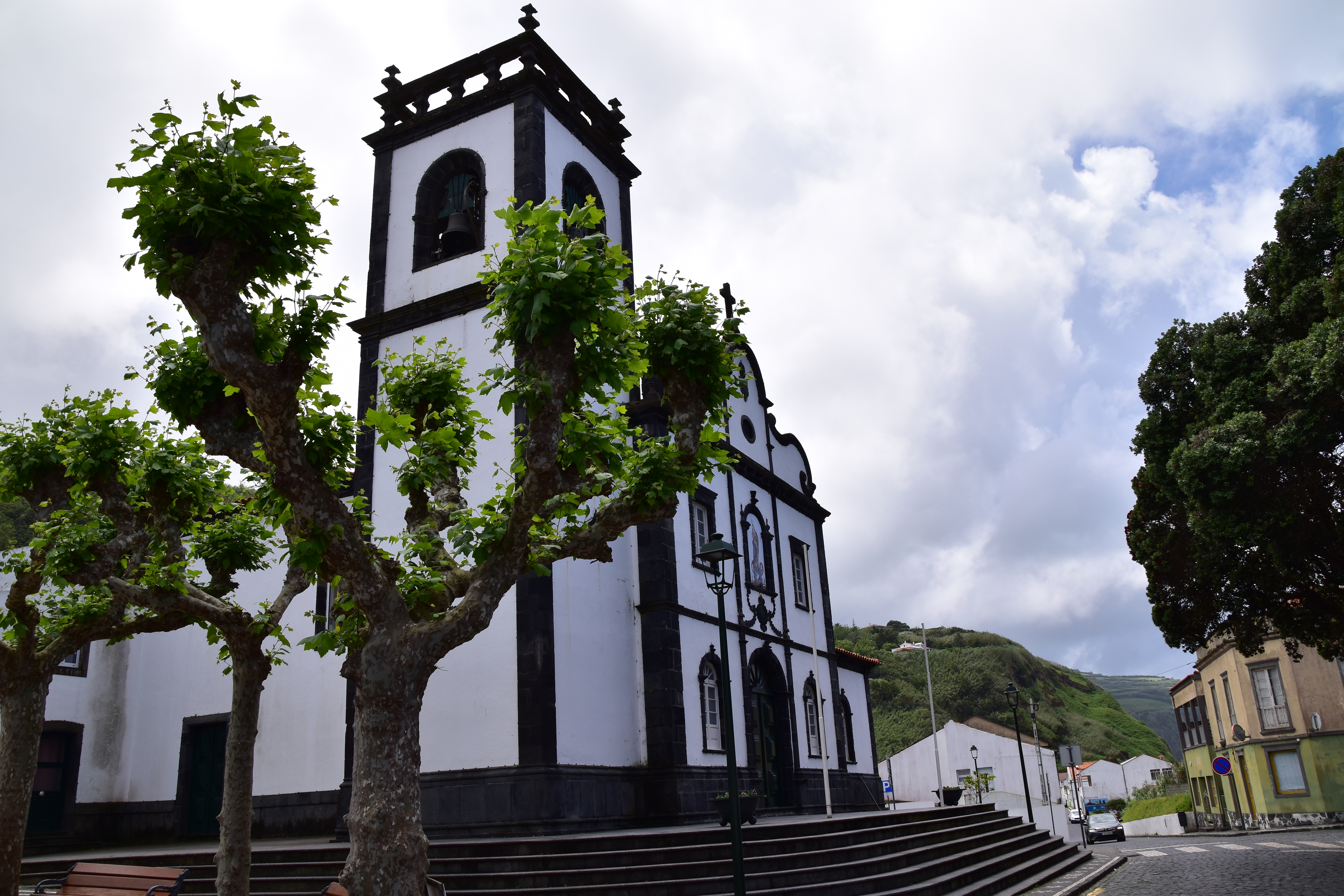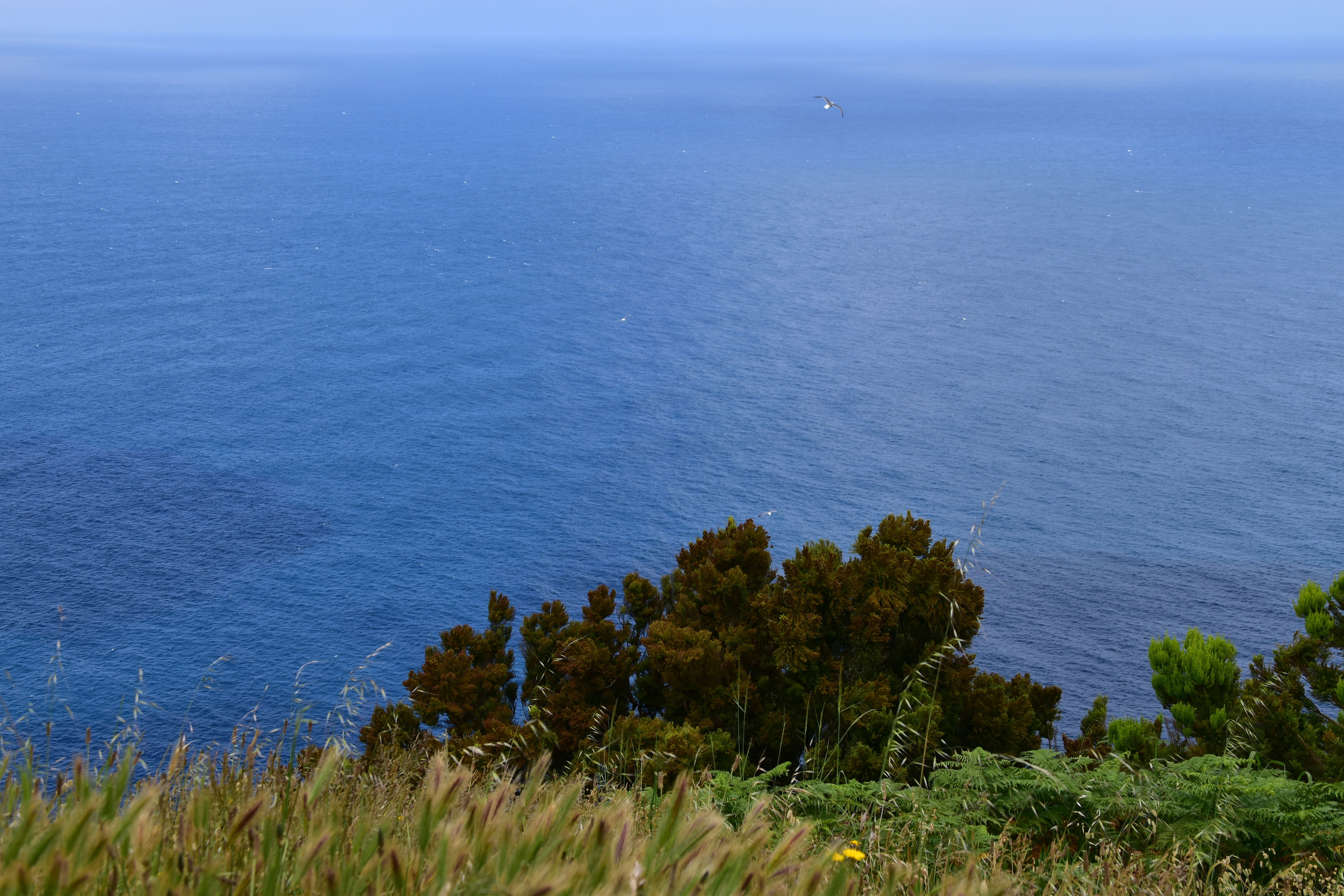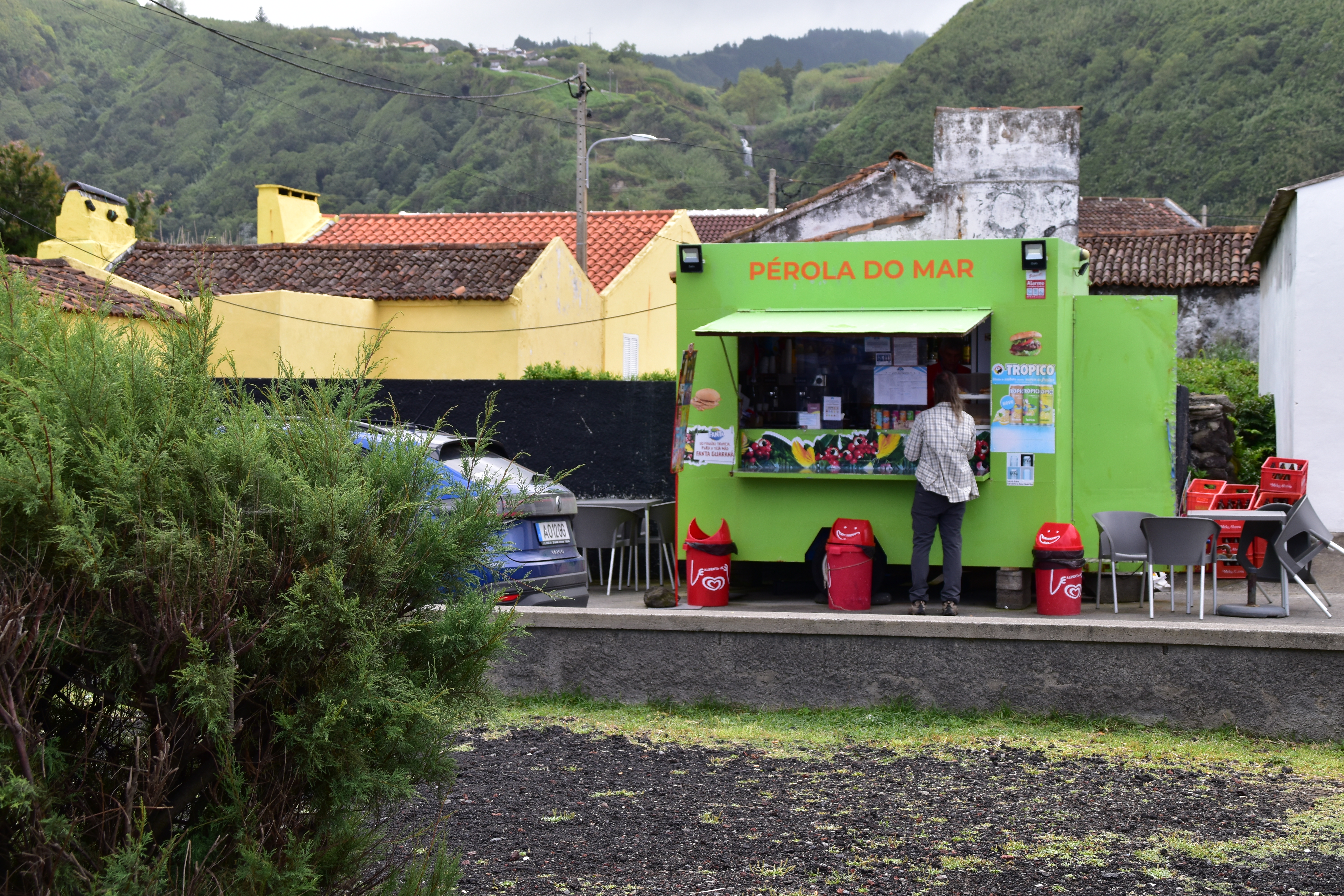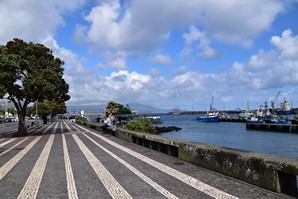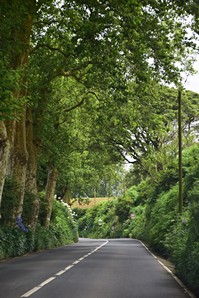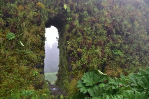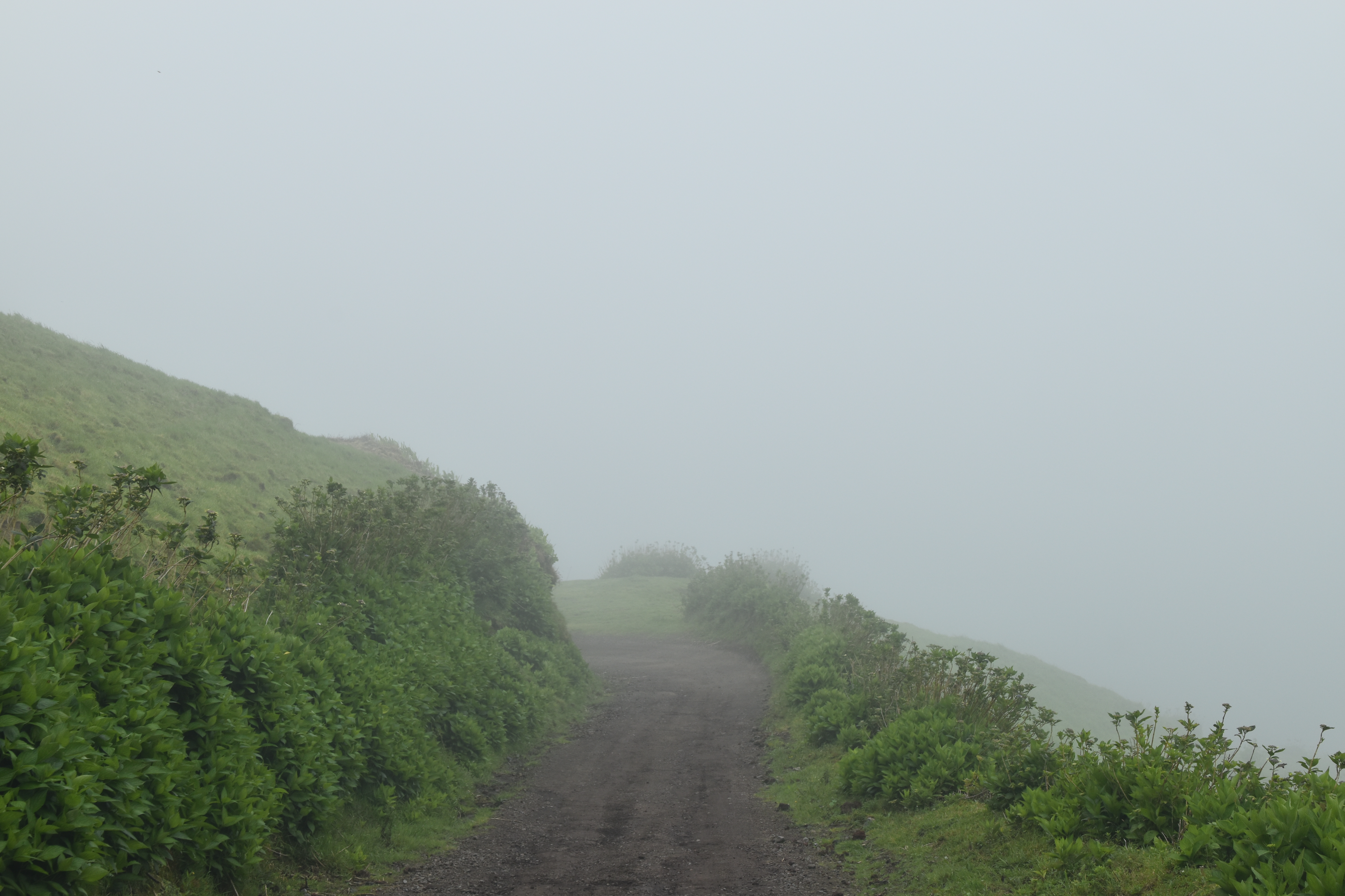 Le ciel est partiellement dégagé ce matin sur Ponta Delgada et nous tentons notre chance pour Sete Cidades. Toutefois en montant vers les points de vue, nous finissons par perdre presque complètement le paysage des deux côtés de la route. Cela donne un aspect très romantique au trajet, et nous arrêtons quand même à l'aqueduc pour prendre quelques photos, malgré le vent qui souffle à 1000 km/h au moins en nous fouettant au visage la brume contenue dans les nuages qui ont envahi toute la route.