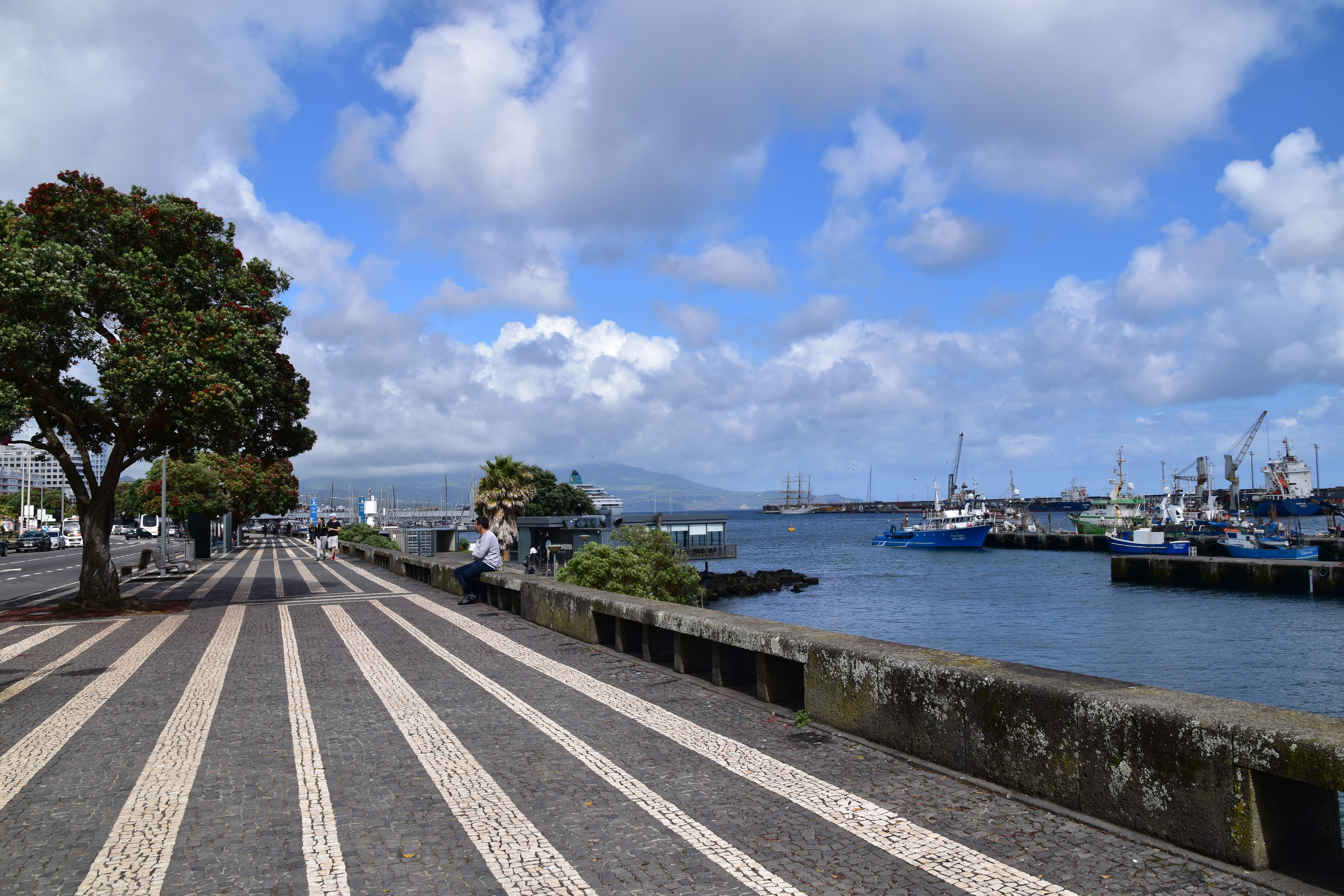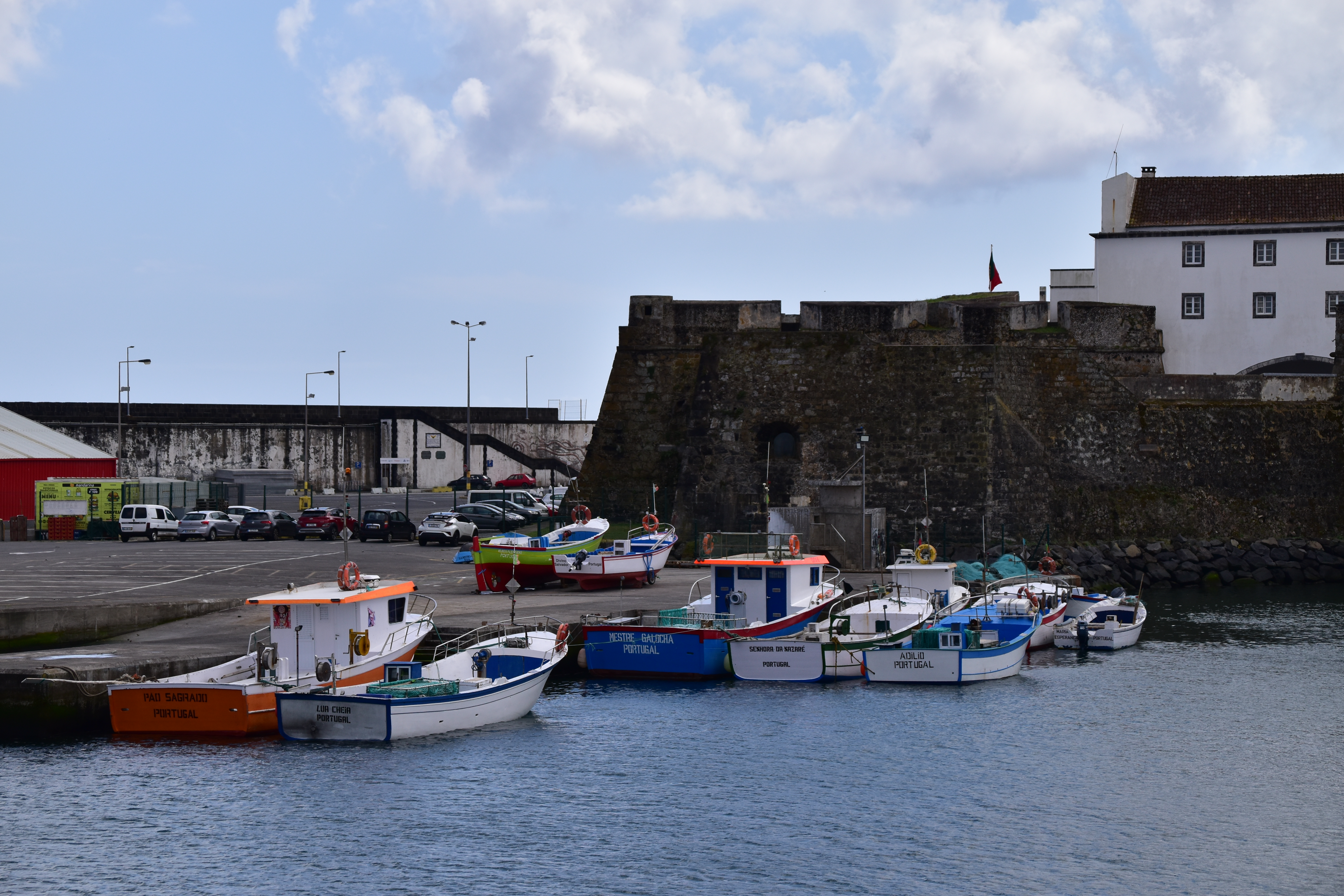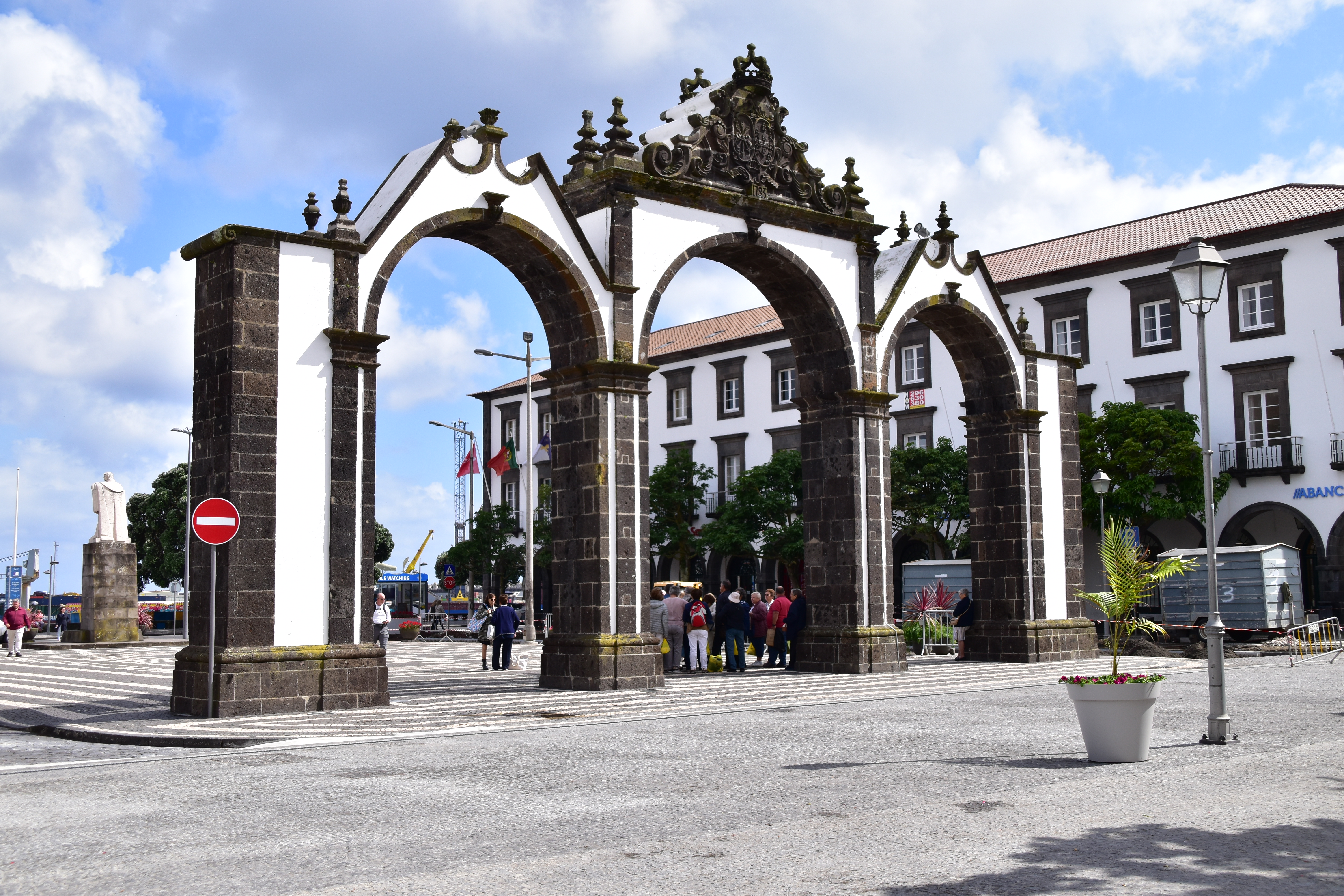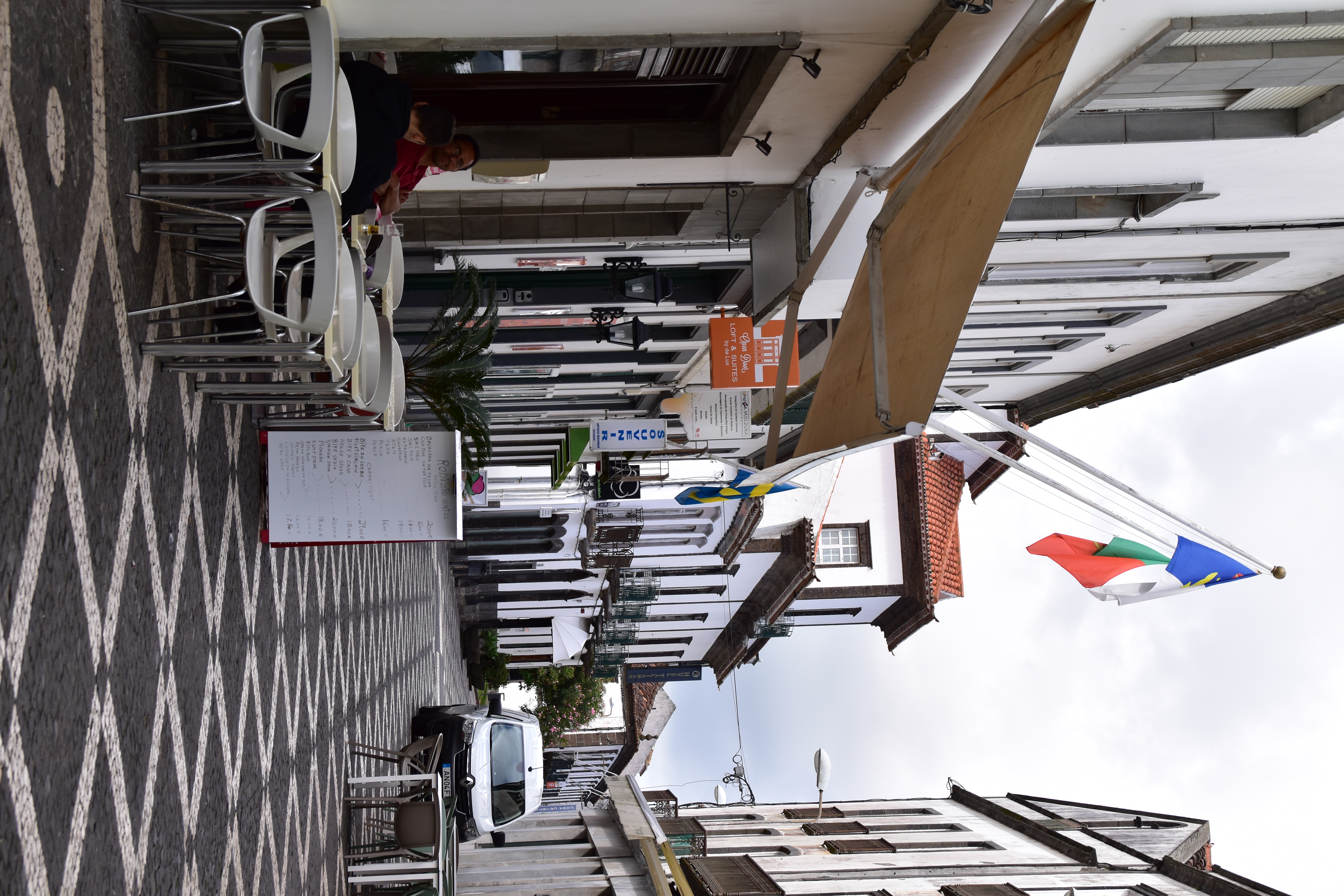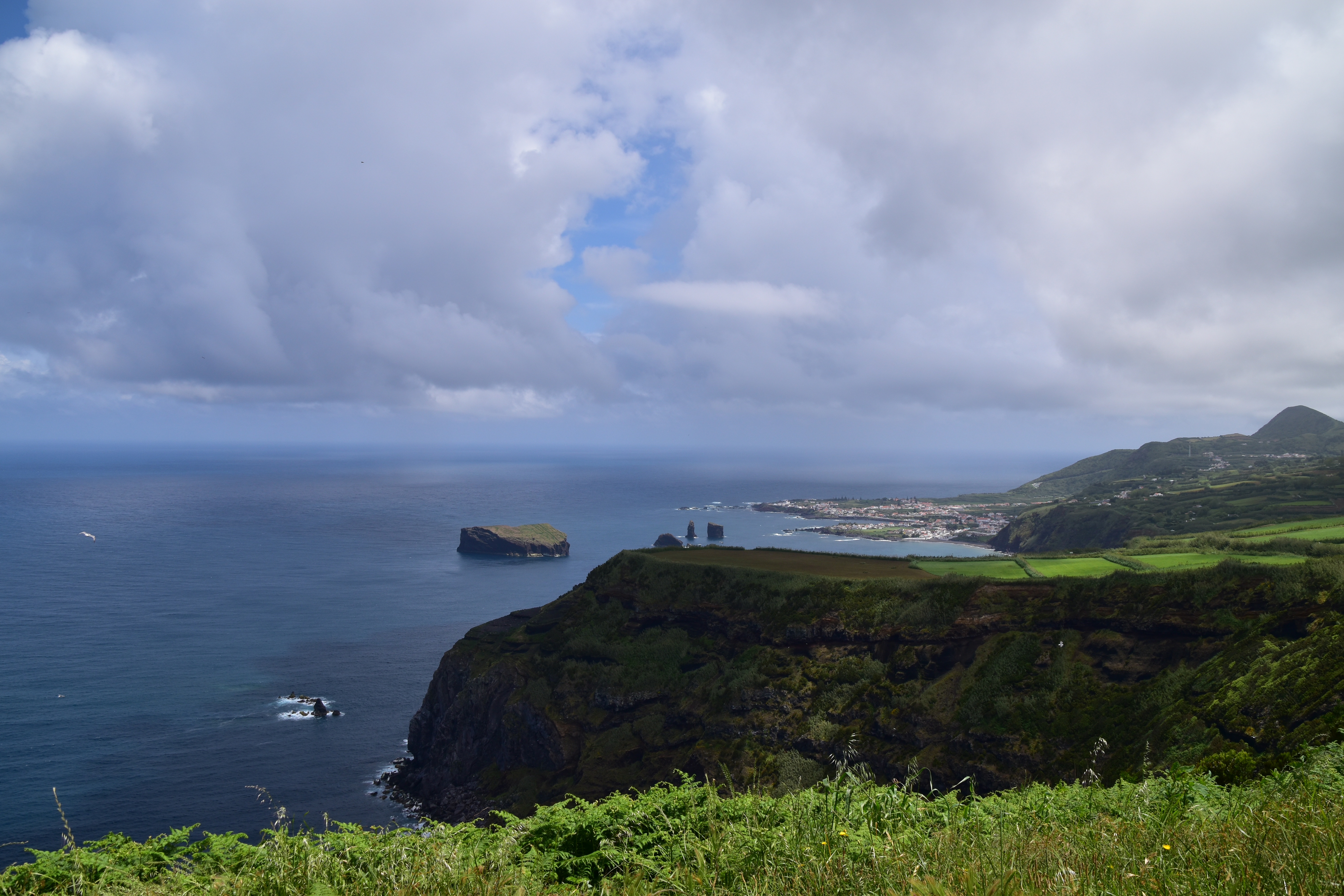 Le ciel est partiellement dégagé ce matin sur Ponta Delgada et nous tentons notre chance pour Sete Cidades. Toutefois en montant vers les points de vue, nous finissons par perdre presque complètement le paysage des deux côtés de la route. Cela donne un aspect très romantique au trajet, et nous arrêtons quand même à l'aqueduc pour prendre quelques photos, malgré le vent qui souffle à 1000 km/h au moins en nous fouettant au visage la brume contenue dans les nuages qui ont envahi toute la route.