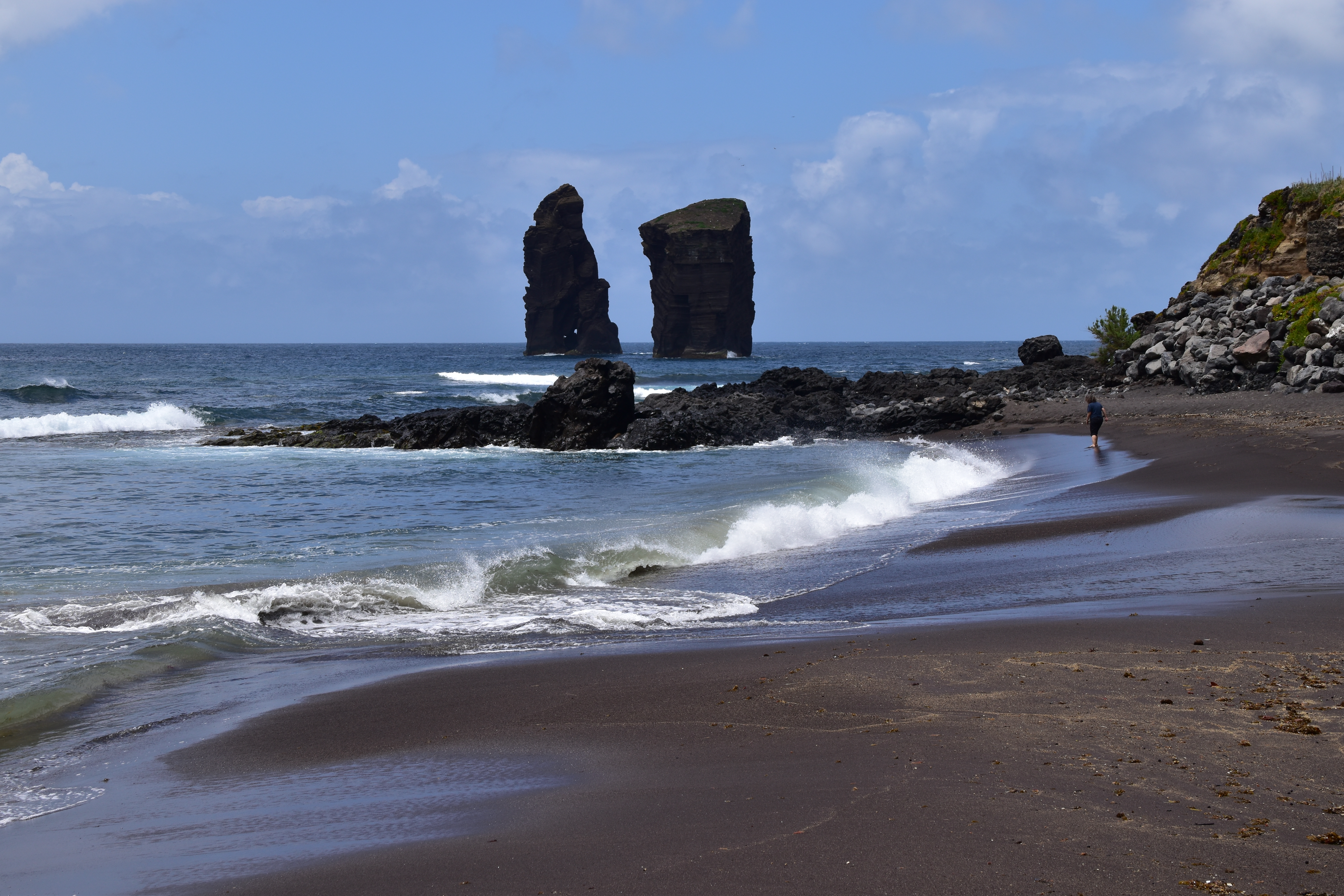 Nous partons ensuite sur Varzea ... route le long de la côte nord, plage de sable noir puis redescente sur ponta