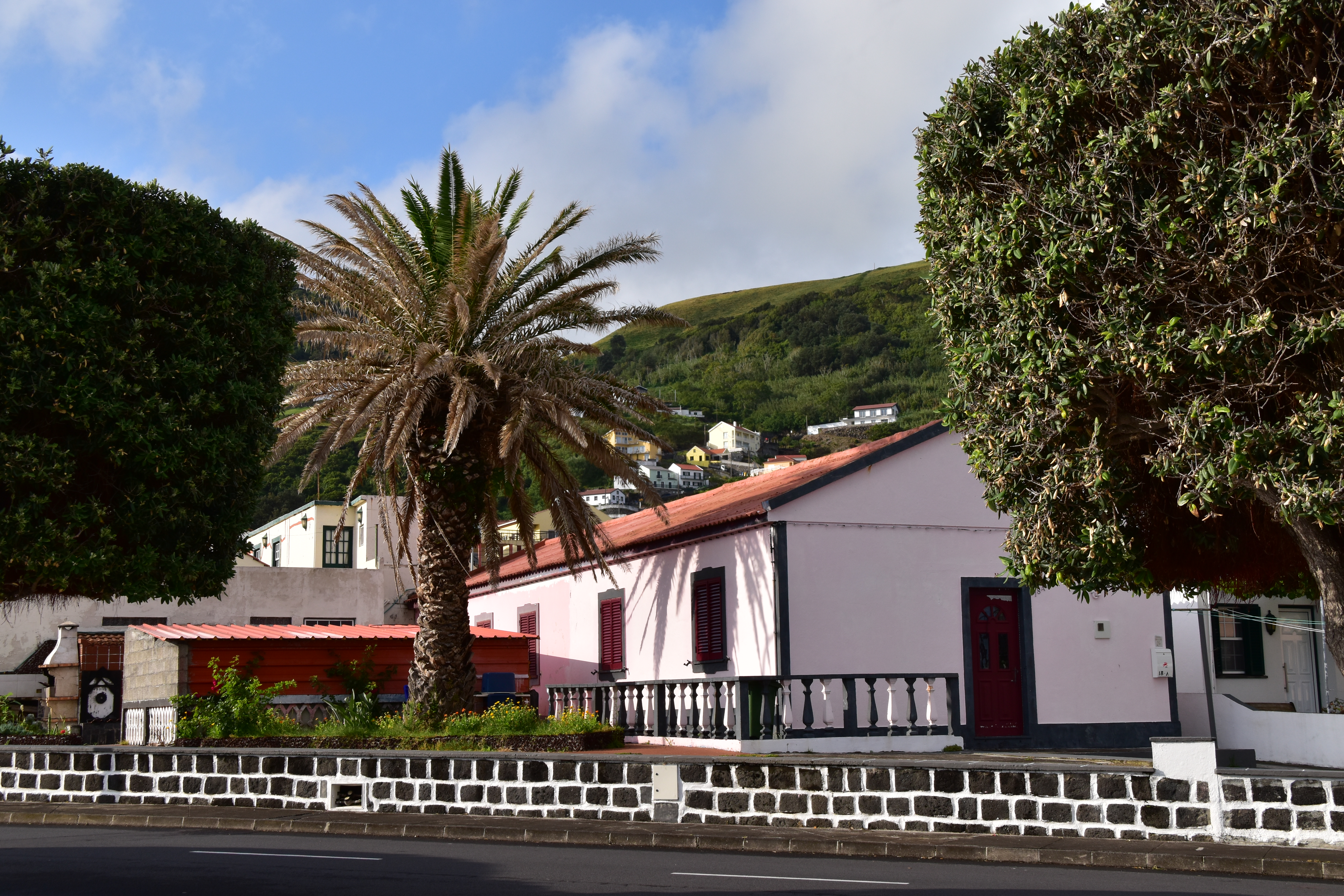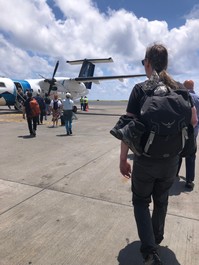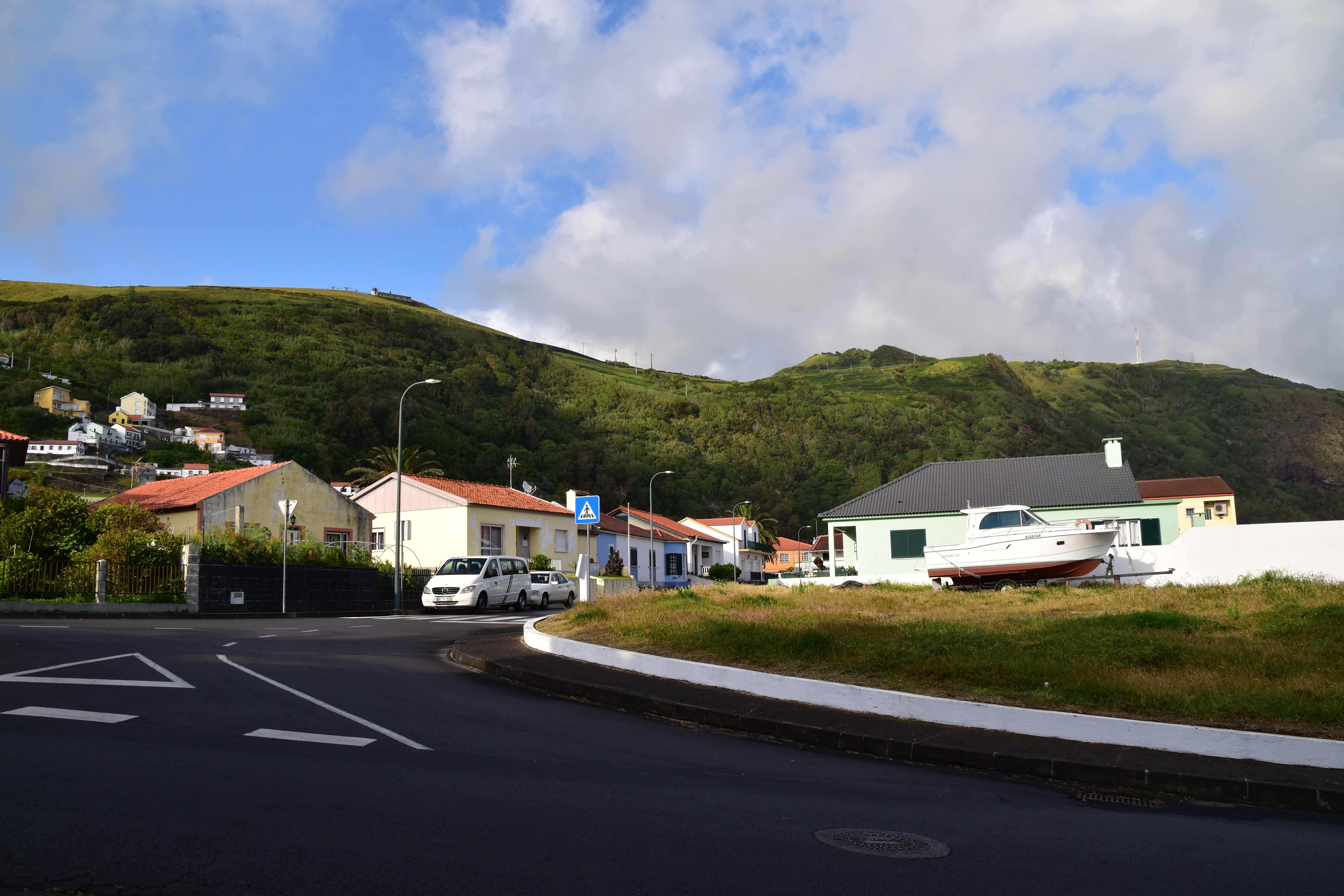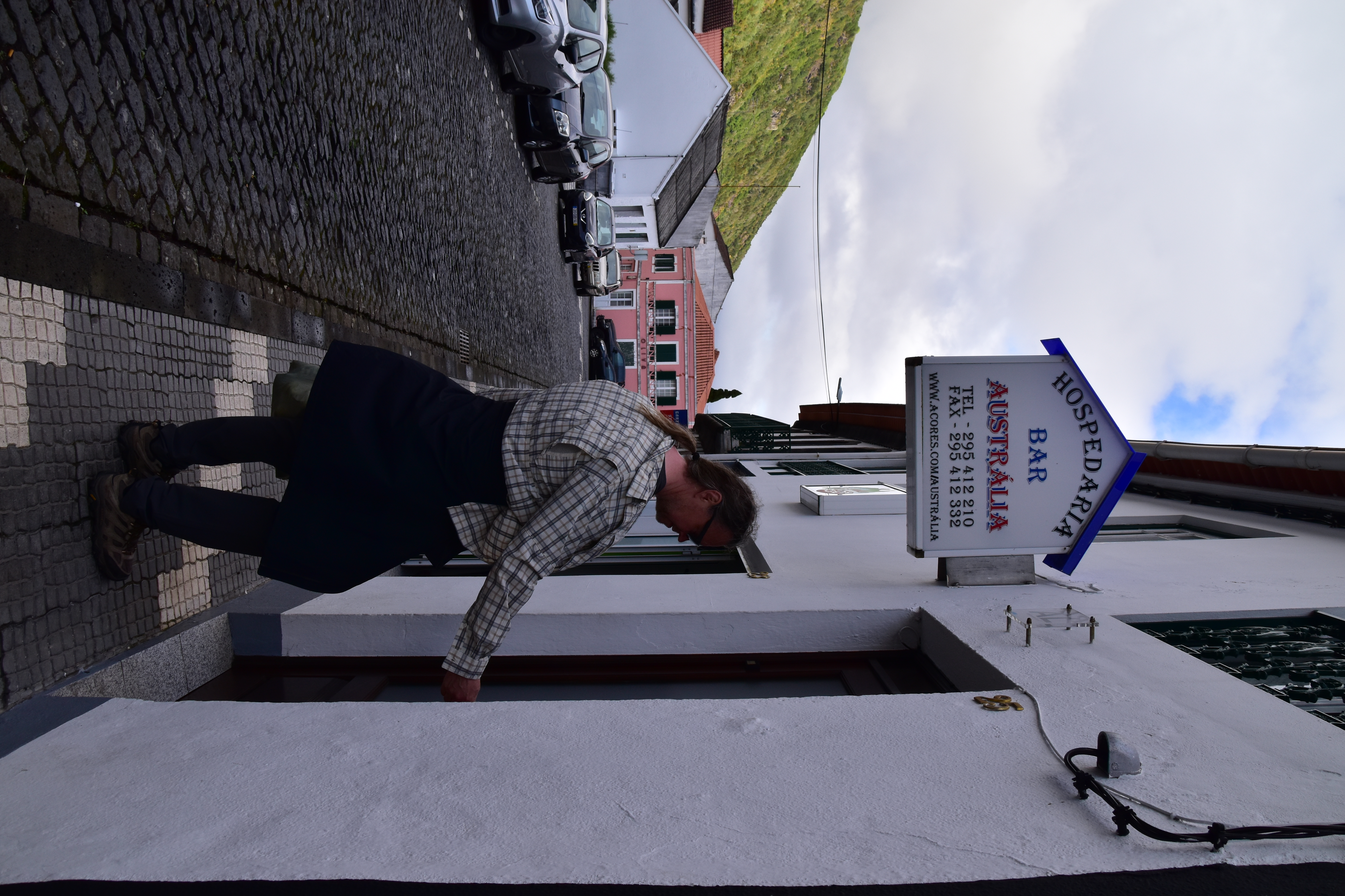 Nous faisons la grasse matinée et quittons l'hôtel vers 11h15 pour marcher jusqu'au stationnement, aller faire le plein puis remettre la voiture à midi dans le stationnement de l'aéroport. Bien que nous prenions un vol domestiques inter-îles, les formalités de sécurité ne sont pas ménagées: il faut jeter l'eau, avoir les liquides réglementaires dans le proverbial ziplock et nos valises sont fouillées comme elles ne l'ont jamais été auparavant, même à Heathrow! Nous nous envolons avec une quinzaine de minutes de retard seulement, et arrivons à Velas, sur l'île de Sao Jorge vers 15h30 après 1 heure de vol.