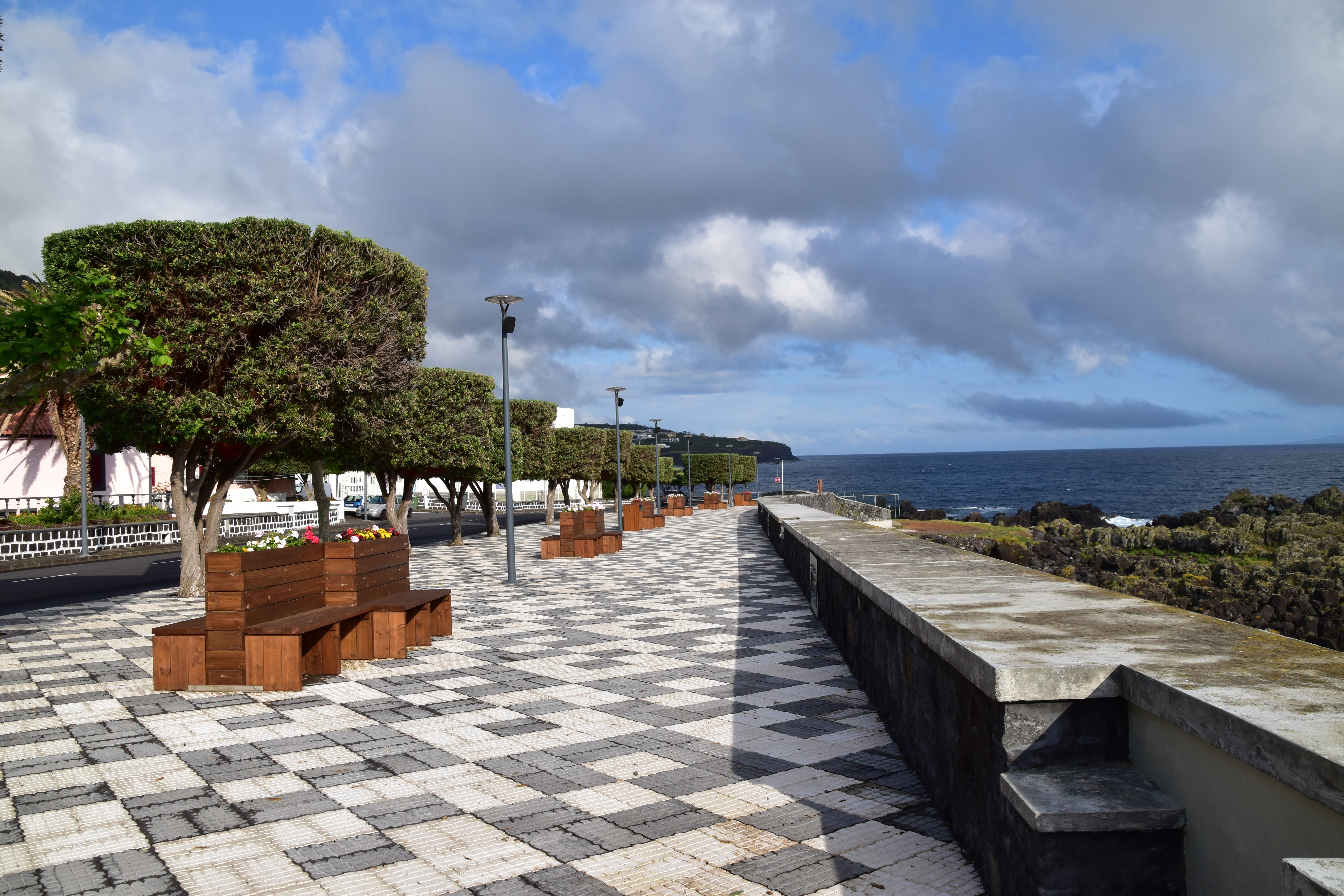 Après avoir pris notre chambre, nous partons faire quelques emplettes à l'hypermarché, puis marcher dans le port et le long du boardwalk de Velas, petite ville qui nous plaît instantanément.