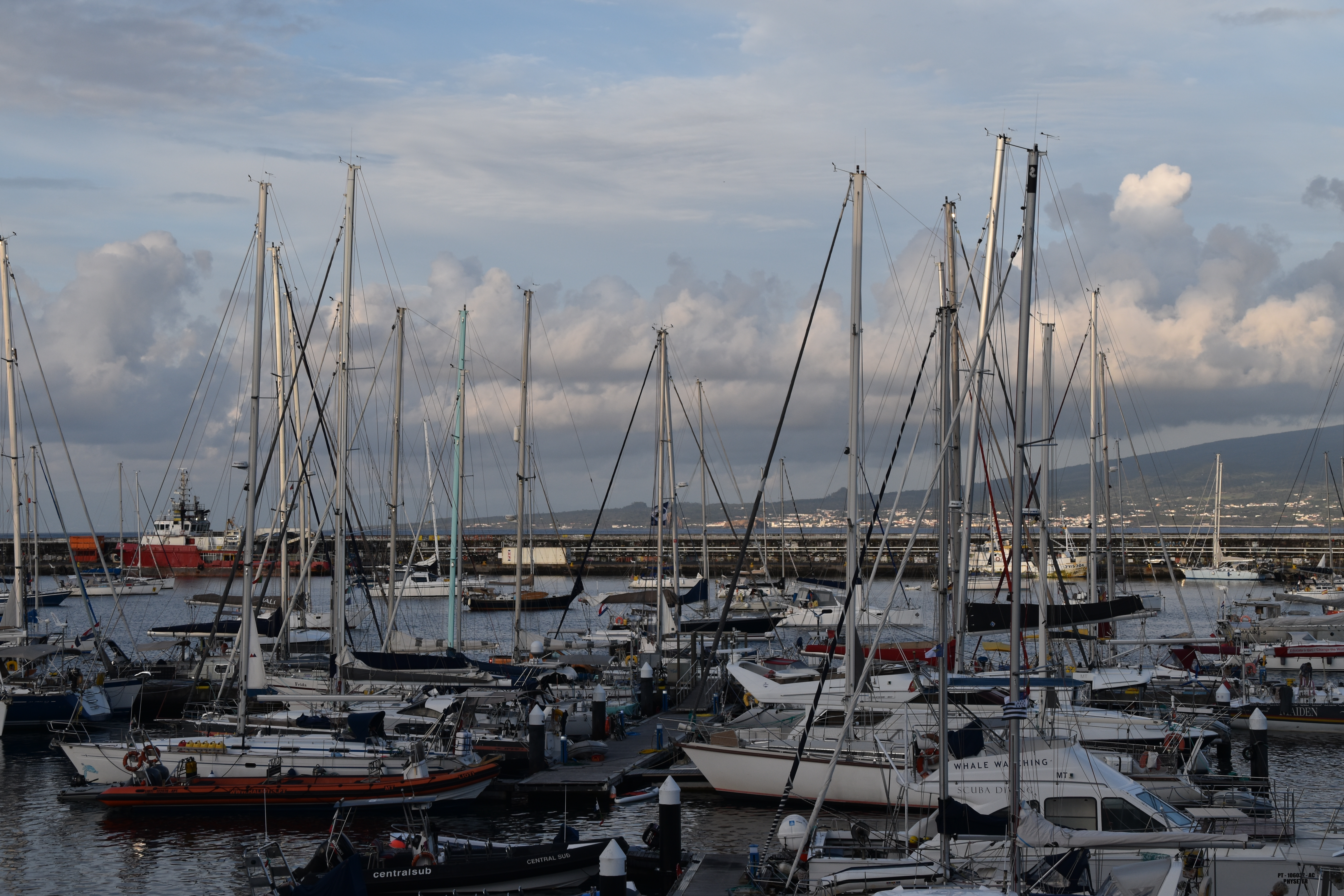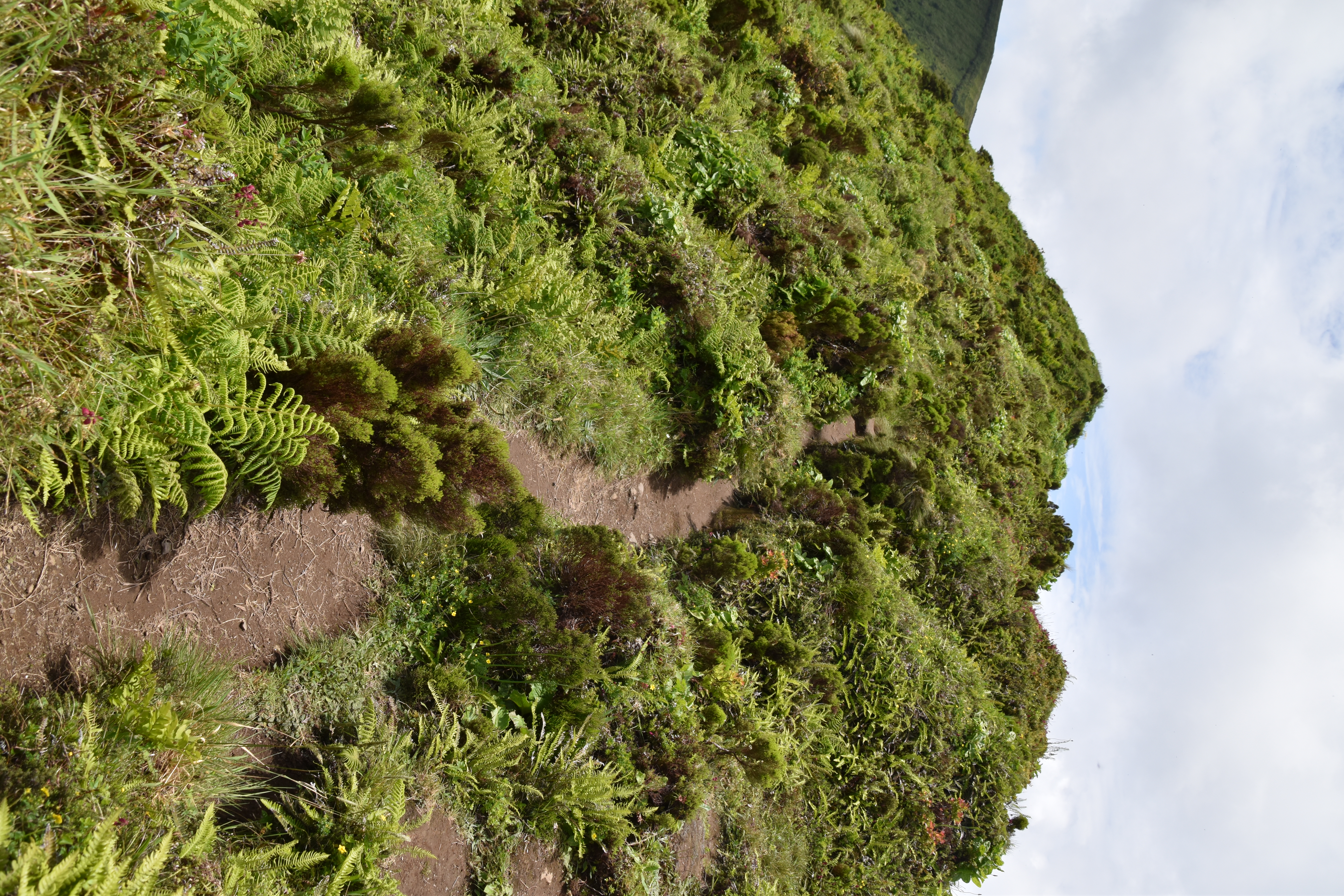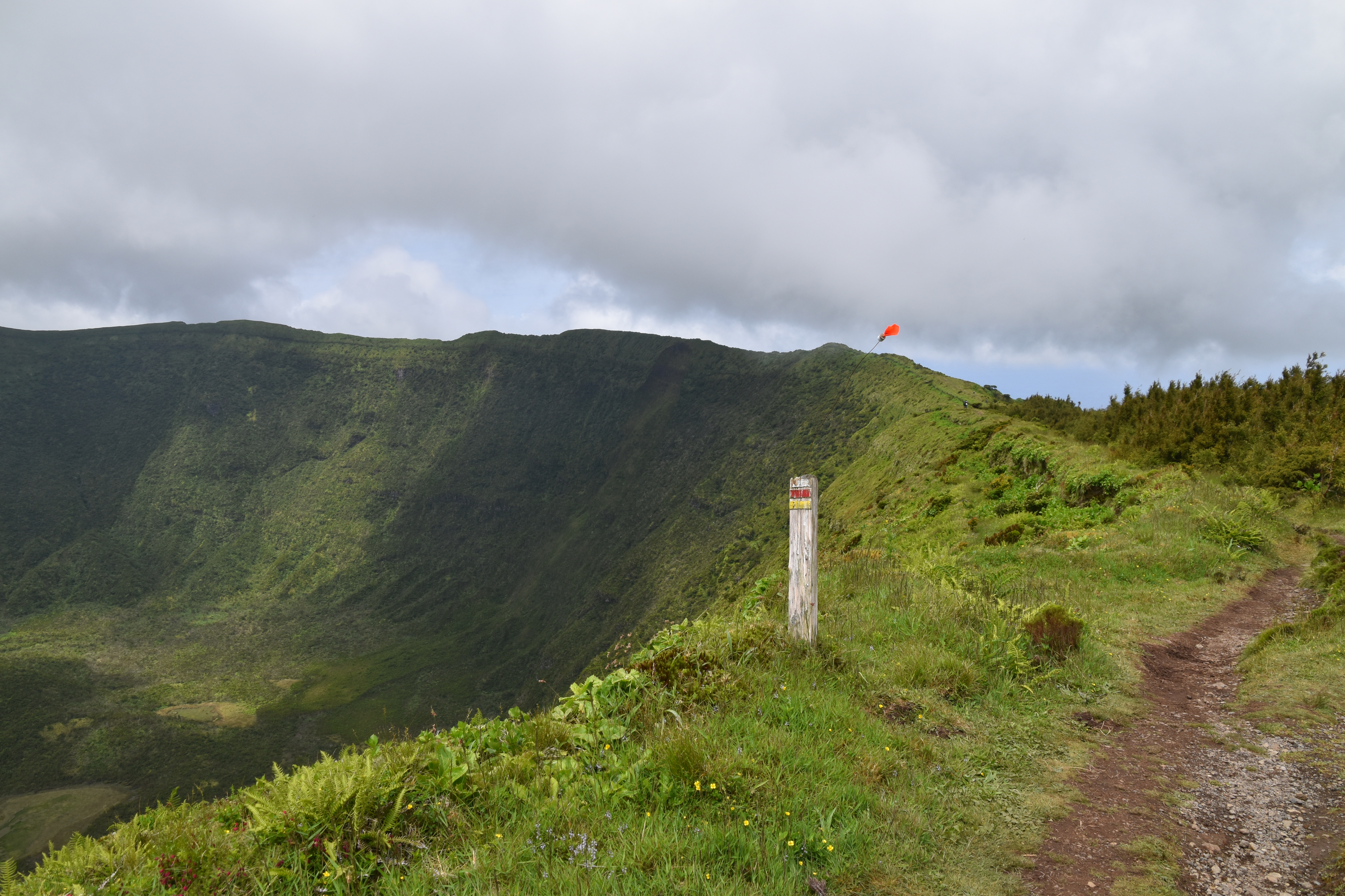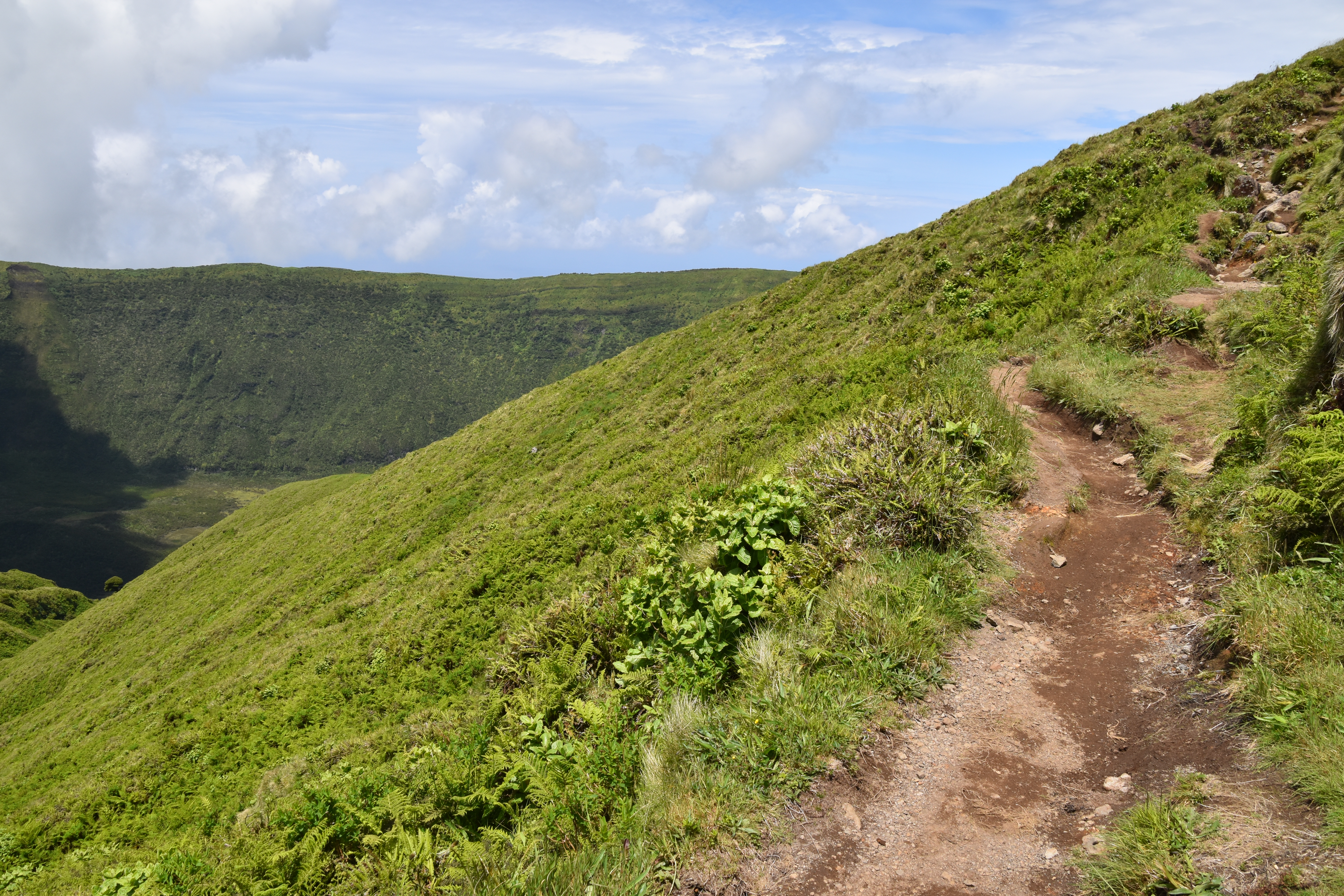 On prend le traversier ce matin, 11 kilomètres à peine pour rejoindre l'île de Faial. Dès notre arrivée, comme il fait beau, on se rend à la caldeira do cabeço gordo. Deux heures et demi pour faire le tour sur la crête, avec des vues magnifiques dans toutes les directions. C'est vraiment très beau.