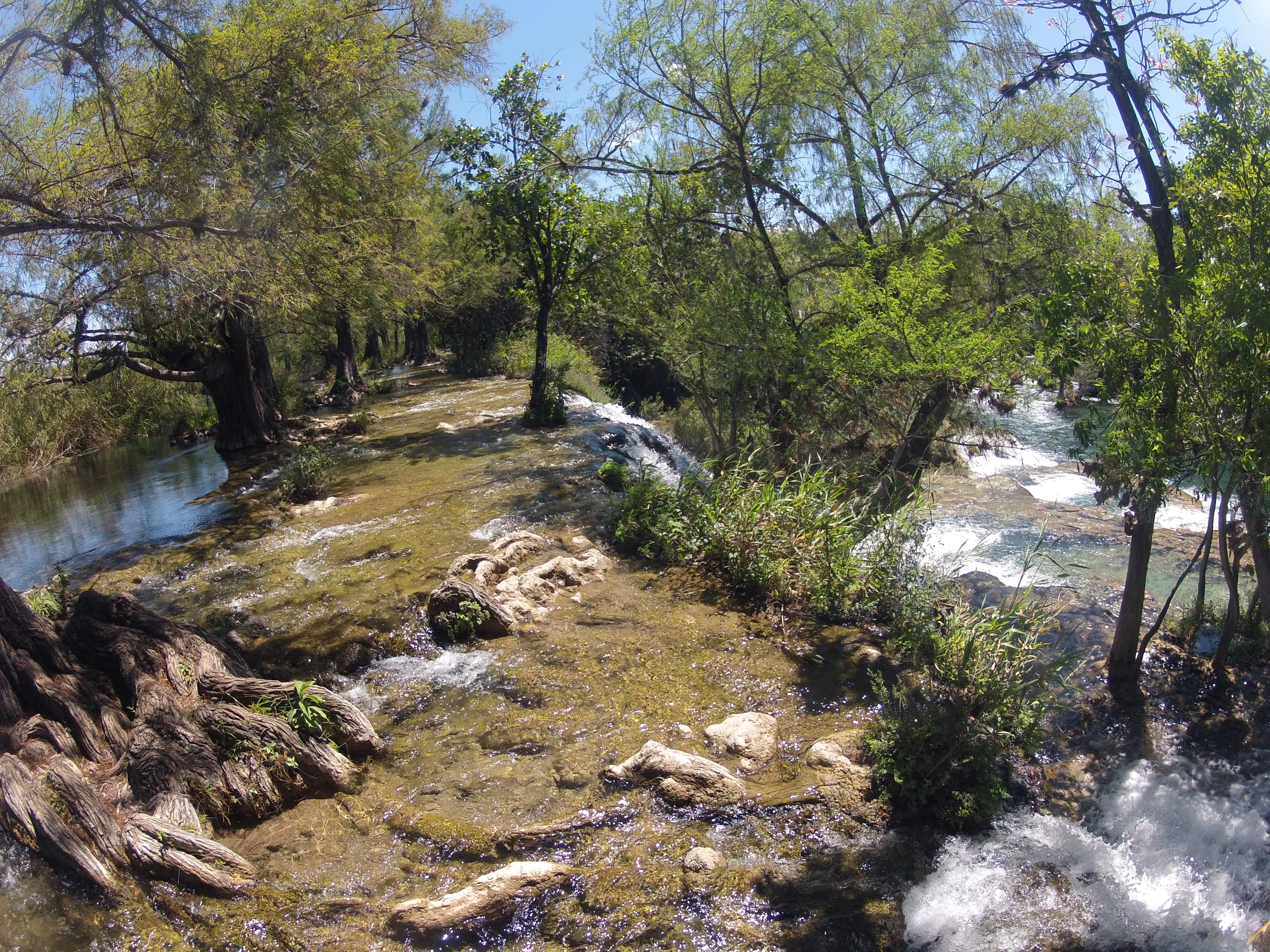 Après une petite heure, nous repartons vers lagos de Colon. Le site est très beau, il s'agit d'un système lagunaire de 350 hectares où se trouvent 44 lacs reliés entre eux par des canaux. L'endroit est très fréquenté, surtout où les bassins sont aménagés autour, avec des tables et des places de stationnement. Nous nous baignons dans l'un des bassins principaux, puis marchons jusqu'aux cascades dont nous profitons pendant une bonne heure et où il n'y a pas un chat. De retour au site principal, la belle-soeur du frère de Martin (!),Gladys, vient nous rejoindre avec son chum et leur fille; elle nous prépare un lunch sur un feu ouvert: poisson frit, riz et salade. C'est très bon. Après s'être à nouveau baigné et s'être questionnés sur les habitudes mexicaines de se baigner tout habillé (en jeans même!), on ramasse nos affaires pour aller visiter l'oncle de Iris qui habite à Comalapa et qui nous offre une petite prestation de marimba. Nous repartons finalement vers 18h et roulons 3 hrs jusqu'à Huixtla, où nous avons l'intention de passer la nuit. Malheureusement, les hôtels sont soit complets soit sans espace de stationnement, nous décidons donc de pousser jusqu'à Tapachula pour trouver un hôtel même s'il faudra refaire le chemin en sens inverse demain matin. C'est un moindre mal puisque cela nous permet de souper à Las Tablitas, où la bouffe est bonne et surtout l'atmosphère très chaleureuse. La place est bondée même s'il est passé 22h00. Nous prenons une chambre au Confort inn où la climatisation est vraiment bienvenue car Tapachula est un véritable four!