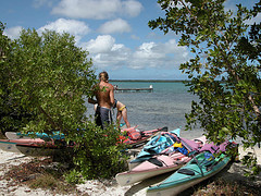 Pendant 3 jours nous pagayerons dans le cul de sac marin, sauf la dernière portion pour nous rendre à destination. L’excursion débute dans la mangrove. On a l’impression de pagayer en Amazonie, alligators en moins! Nous sillonons les canaux, impressionnés par les innombrables palétuviers.