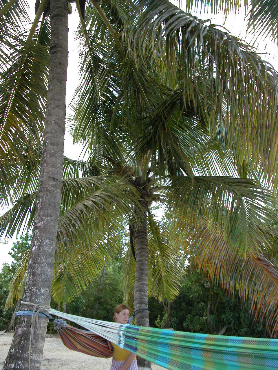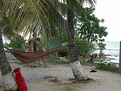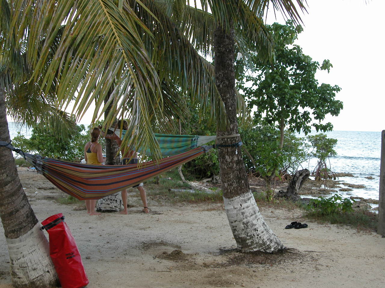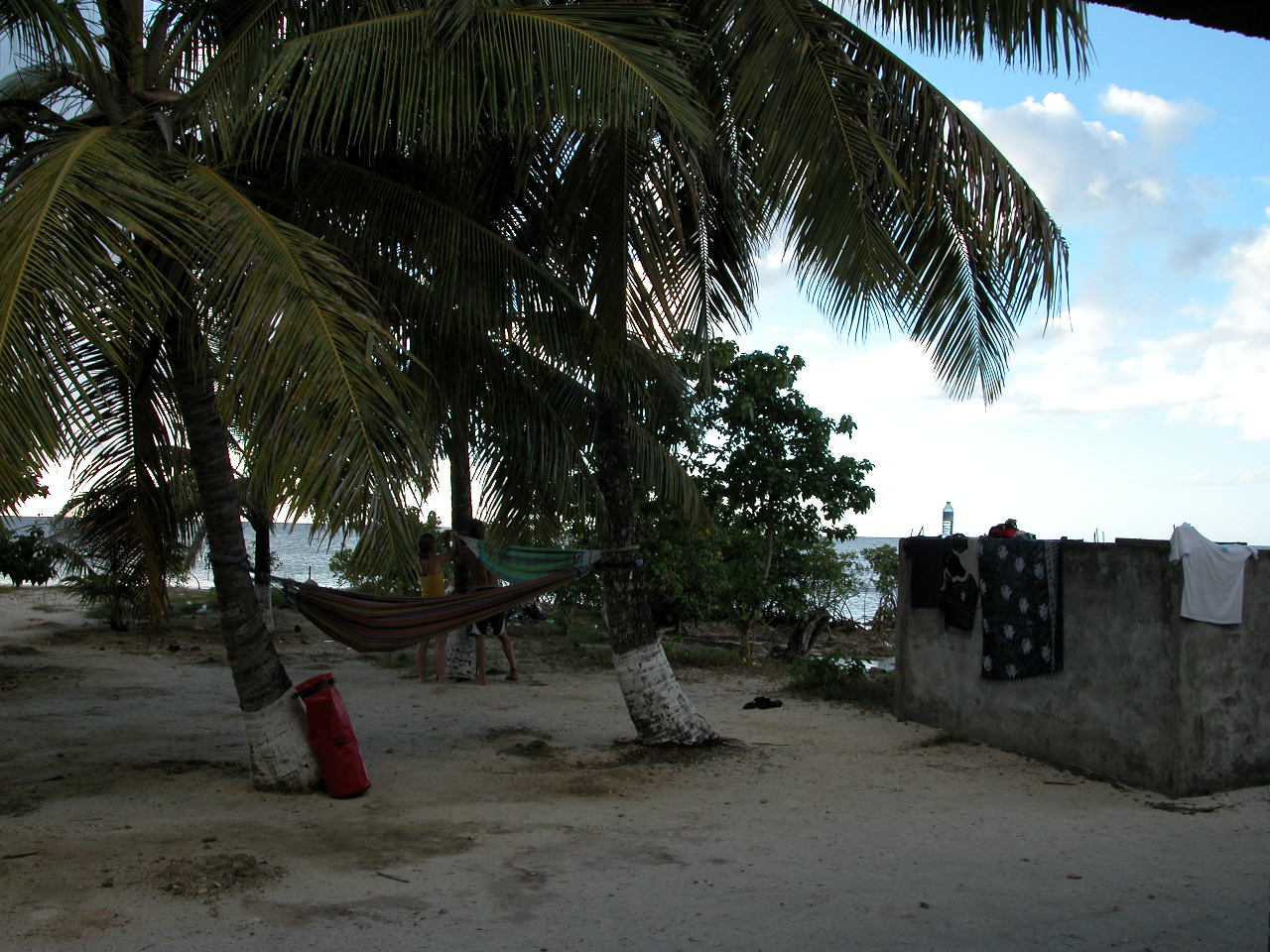 Nous visitons avec curiosité la petite chapelle sur l’îlet. Nous regardons, comme tous les soirs, le couchant sur la mer, puis nous soupons en buvant ti-punch sur ti-punch. Il aurait cependant fallu boire bien davantage de ti-punch pour s’assommer complètement en prévision de la nuit! Martin et moi qui avions choisi de dormir en tente avons vraiment fait le bon choix, ne serait-ce que pour cette nuit sur Macou, où les petites mouches appelées ien-iens sont des millions à se ruer sur nous avec voracité. Nous avons renoncé aux insecticides, trop dégueux par cette humidité, trop collants et trop puants. Nous nous réfugions dans la tente quand la situation devient intenable. Toute la nuit, nous dormirons (à peine) couchés sur le dessus de nos sacs de couchage dans un pouce d’eau, trempés de sueur, attendant l’aube avec impatience. Pour les autres qui ont choisi de dormir en hamac, pas d’autre alternative que de se cacher complètement dans les sacs de couchage, tête incluse, pour éviter la faune ailée, enroulé dans les hamacs, à une température de 30 degrés au moins ...