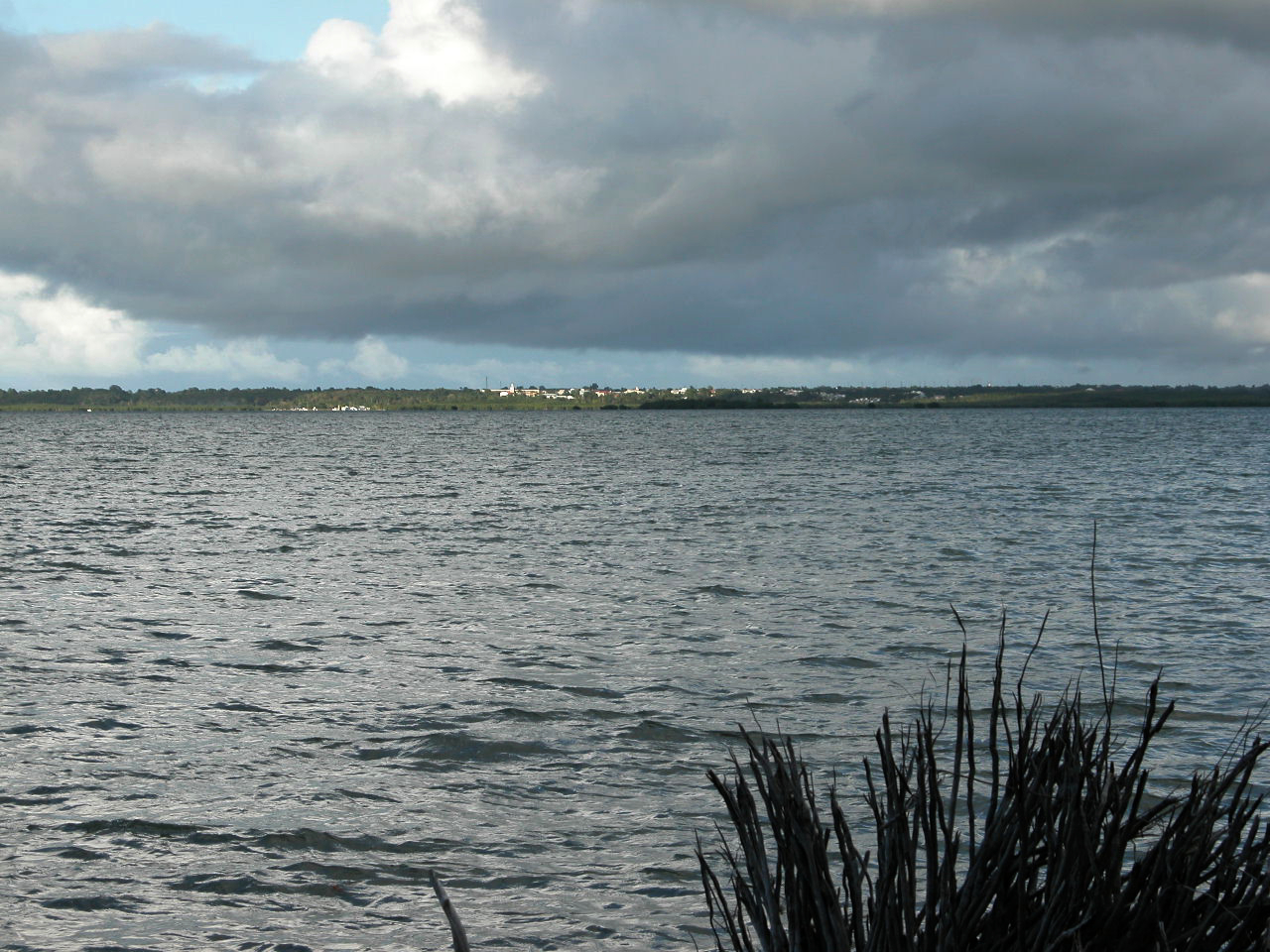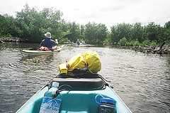 Nous nous rendons jusqu’à Petit-Canal, l’endroit d’où nous partirons avec les kayaks en excursions pour quelques jours. Nous parvenons à faire entrer tout l’équipement dans les embarcations, et hop! c’est parti. Martin et moi nous sommes portés volontaire pour l’unique tandem, puisque de toute façon nous préférons pagayer ensemble, ce qui nous permet de prendre des photos, grignoter et jaser en toute quiétude. Le tandem est plus gros et plus lourd mais lorsque nous serons carrément au large, nous avancerons plus facilement que ceux qui sont en solo, plus légers et plus verseurs. L’atmosphère est très relax car les risques en cas de dessalage ne sont pas bien grands : l’eau est à 32 degrés!