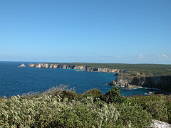 Après le lunch, nous poursuivons vers la Pointe des Châteaux. La route sinue et on voit presque toujours la mer, les paysages sont superbes, les villages charmants, c’est très plaisant. À la Pointe des Châteaux, on se fait venter sérieusement avec une vue spectaculaire sur la mer qui vient se fracasser sur les falaises. Le bruit, le vent, les odeurs, c’est presque bouleversant de beauté.