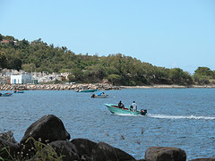 Après quelques heures, nous commençons à fatiguer, et comme nous ne sommes que nous deux, il nous semble plus prudents de malheureusement regagner la rive. Un audacieux fait de la planche à voile au loin.