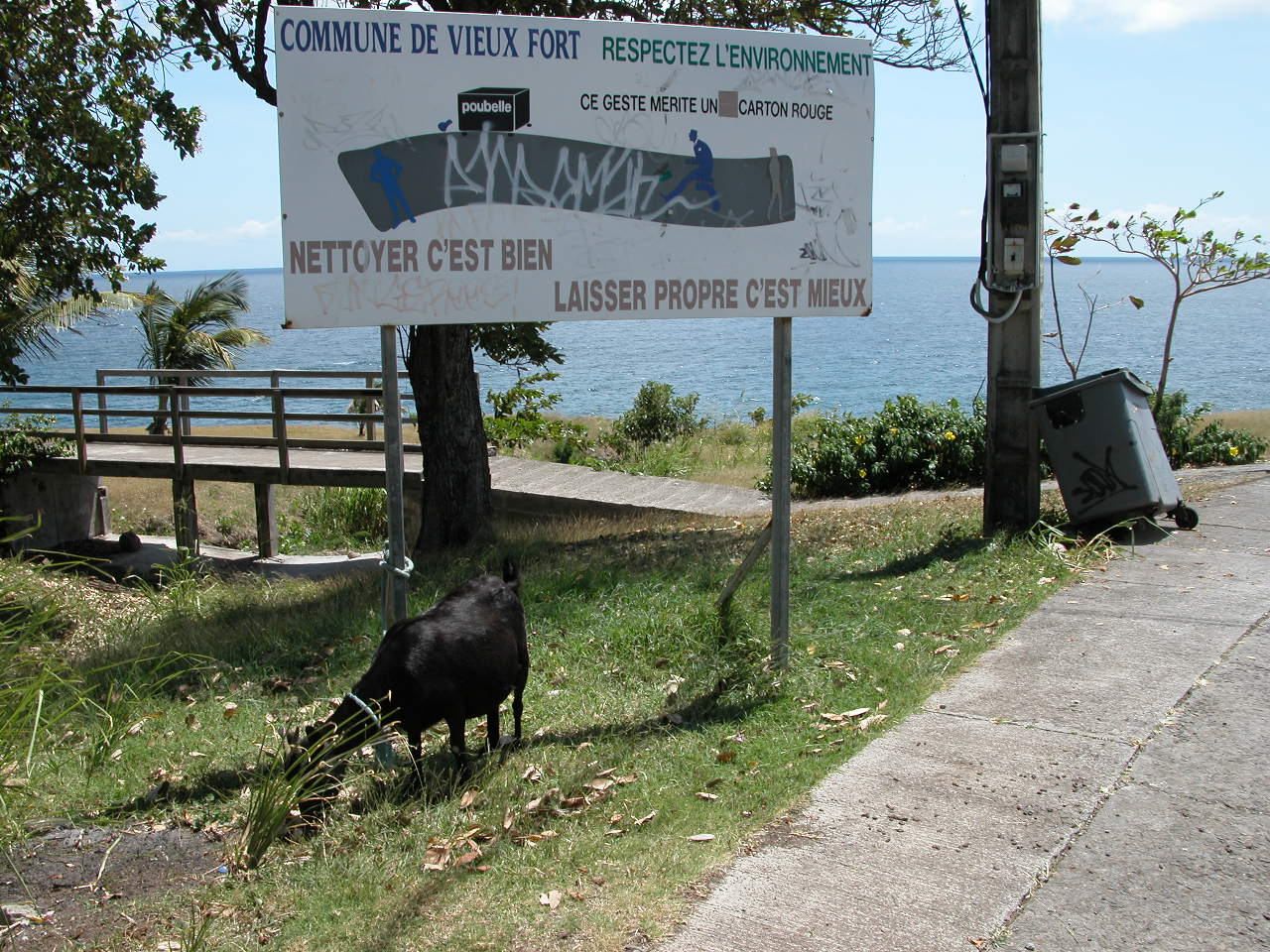 Le gros projet de la journée est de retourner faire du snorking à Vieux Fort, où nous sommes allés trop brièvement lors de la première semaine. Nous prenons la route vers le sud jusqu’à la pointe où nous retrouvons l’endroit! Masques, palmes et tuba, et nous sommes à l’eau. Le courant est très fort et les vagues se fracassent avec grand bruit sur les rochers mais sous l’eau tout paraît plus calme et il y a une multitude de poissons de toutes sortes qui ne nous prêtent aucune attention. Près des roches, les récifs regorgent de vie, et quand on s’éloigne un peu du bord, rapidement on ne voit plus du tout le fond en dépit de la limpidité de l’eau. Cela donne le vertige, quand on voit passer des bancs de poissons quand même assez gros à des dizaines de mètres sous nous!