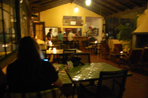 Nous soupons tranquilles à l'hôtel avec un feu de foyer allumé dans le restaurant car le vent souffle toujours aussi intensément. L'hôtel est complet, il y a beaucoup de monde sur la terrasse et au restaurant.