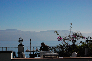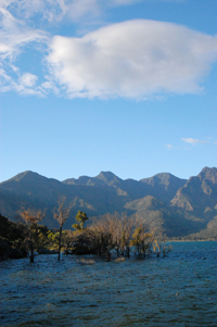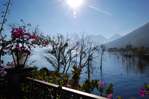 Nous achetons un foulard et du café dans une boutique qui vends les produits de la Coop FEDEPMA. De retour à l'hôtel, nous lisons assis sur la véranda face au lac pendant que le ciel s'ennuage. Dans le restaurant au-dessus de nous quelqu'un se met au piano et avec la vue sur le lac, le feeling est quand même assez parfait. Nous finissons par monter voir de qui il s'agit et en profitons pour prendre l'apéro et éventuellement le souper.