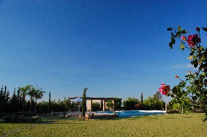 Nous quittons Mirleft vers 10h30, après l'excellent petit déjeuner habituel chez Sally's. Nous avons prévu environ 4h30-5h pour rejoindre notre prochaine logement, en banlieue de Marrakech. Aujourd'hui, contrairement à nos habitudes, nous prendrons l'autoroute, d'autant plus que Martin a contracté le virus de Stéphanie, et c'est donc un conducteur assez barbouillé et fiévreux qui passera quand même bravement la journée au volant. Le ciel est toujours très nuageux en quittant Mirleft, nous remontons par le bord de la mer jusqu'à Aglou Plage, puis prenons la nationale vers Tiznit et Agadir. Ensuite, c'est l'autoroute qui monte jusqu'à Marrakech, mais la route n'est pas du tout ennuyeuse, car pour une bonne partie du trajet le paysage est quand même assez spectaculaire, à travers les montagnes rouges. Les camions peinent à grimper dans la voie de droite, et nous les passons à 120km/heure ce qui fait que nous pouvons nous permettre une pause d'une heure pour que Martin fasse la sieste et reprenne un peu de forces avant d'entamer les derniers 100km. Nous contournons Marrakech par la nationale 7 puis la nationale 9, sans aucun problème, ce qui nous étonne: nous commençons à nous habituer à la signalisations semble-t-il! Nous cherchons ensuite sur la route de Ouarzazate la station Petrum où nous devons prendre la piste vers le riad. Nous manquons la station car nous voyons Esso sur l'affiche, sous le nom écrit en Arabe, alors nous poursuivons la route jusqu'à Aït Ourir, où nous comprenons que nous nous sommes trompés et rebroussons chemin. En revenant, le panneau est en français dans l'autre direction (!), nous n'avions pas pris la peine de tourner la tête, c'est bien le Petrum, et nous trouvons facilement la piste puis le riad après 2 petits kilomètres. Nous aurons donc mis six heures, avec un arrêt sieste d'une heure. C'est la première fois que le chrono correspond aux prévisions de google map! Le jardin et la piscine sont magnifiques mais Martin n'en profite pas car il a fourni un effort surhumain pour se rendre jusqu'ici, et le lit l'appelle dès notre arrivée. Ce sont les mêmes symptômes que Stéphanie il y a deux jours, ce qui laisse croire au même virus: diarrhée, maux d'estomac, fièvre et courbatures. Heureusement, il semble s'agir d'un virus duquel on vient vite à bout, car Stéphanie est complètement sur pied maintenant. Après une heure de parfaite baignade avec les oiseaux qui viennent boire dans la piscine, nous mangeons dehors avec notre hôte, un succulent tagine de poisson et filons au lit sans demander notre reste, pour nous reposer avant de partir en rando dans la vallée du Zat pour les quatre prochains jours dans les montagnes environnantes.