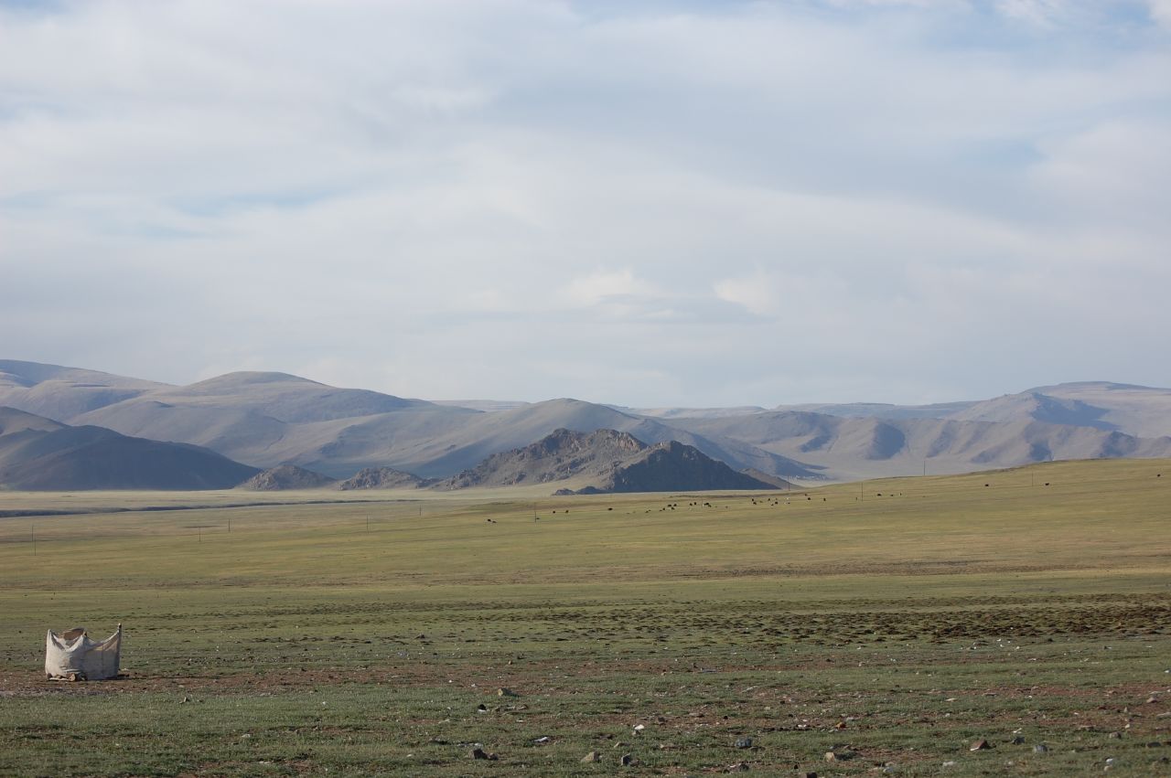 Nous avons dit à Билгээ que nous ne voulions pas déranger ces gens et que nous allions dormir dans notre tente. Il leur explique que cela nous gêne énormément de dormir dans leur ger, etc. Finalement ils nous offrent leur ger et ils dormiront dans la ger des grands-parents, juste à côté .... Nous résistons encore un peu, puis acceptons car après tout ils ont préparé les lieux pour nous et ils sont très sympatiques. Ils quittent tous la ger, sauf une dame qui prépare du lait et du yaourt sur le feu. Le poele chauffe la ger et la rend très confortable. Nous buvons encore un bol de lait que nous offre la femme. Puis elle quitte elle aussi la ger et nous sortons car le soleil est revenu. Trois jeunes jouent avec un poulain. Martin les prend en photo avec le polaroid. La mère du plus jeune nous demande de le prendre en photo sur le poulain. Nous rentrons dans la ger. Elle est déserte, les nomades nous l'ont abandonnée, ce qui est passablement gênant. Билгээ et la gérante arrivent avec le souper: de succulents dumpling végétariens!! Nous en mangeons une quantité déraisonnable. Билгээ et Мандах viennent boire de la vodka dans notre ger avec nous et quittent vers 22h00 pour aller se coucher dans l'autre ger avec la famille, et nous dormons nous-mêmes quelques minutes après.