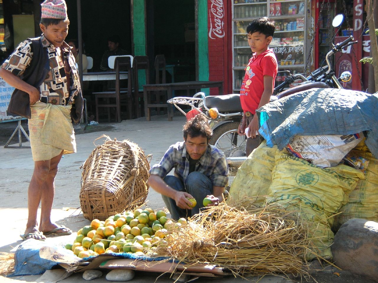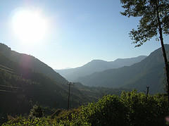 Nous finissons par repartir et quittons Katmandou d'abord pour sa banlieue puis pour de petits villages.Quelques fois quand nous nous arrêtons, ou ralentissons seulement, des gens entrent dans le bus pour nous vendre de l'eau, des Lays au massala,du poisson séché et toutes sortes d'autres choses que nous ne parvenons pas à identifier! Souvent nous apercevons le Macchupuchare par la fenêtre. Il n'y a que nous qui regardons, impressionnés, les sommets enneigés, nos compagnons de voyage dorment, discutent ou vomissent par la fenêtre. Nous ralentissons parfois pour prendre quelqu'un qui fait une portion de trajet avec nous. Nous arrêtons dîner d'un succulent dhal bat et remontons à bord.