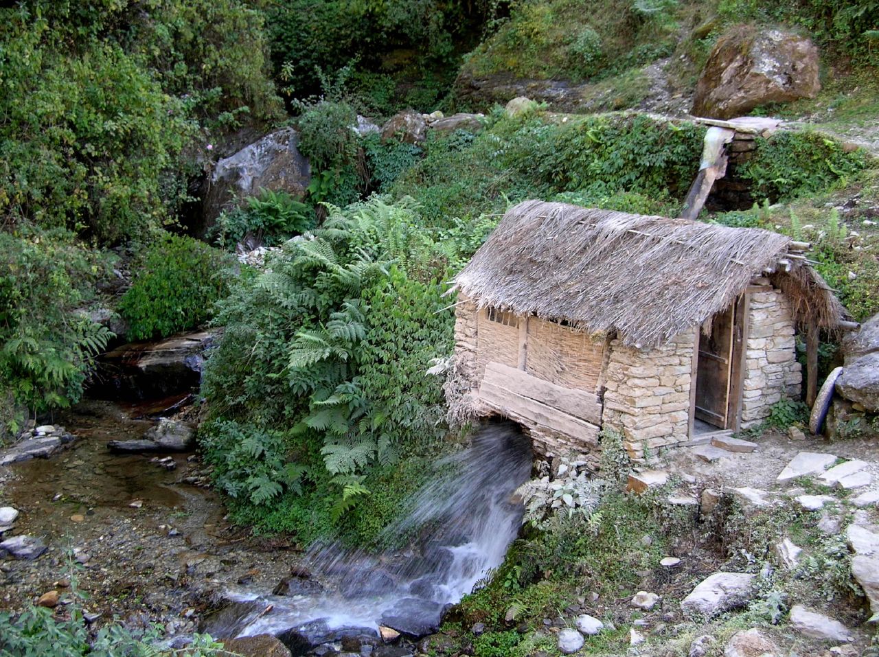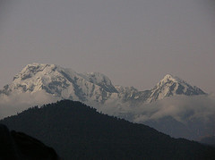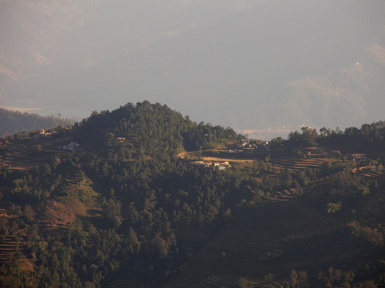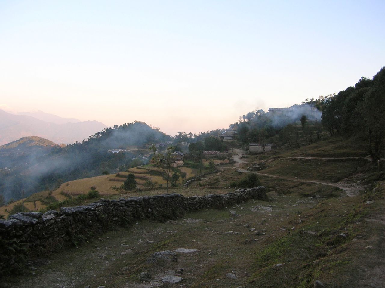 Arrivés à Deurali, il vente et nous sommes trempés: donc on gèle. Allégé de son sac et de son dîner Martin va mieux et c'est d'un bon pas que nous quittons Deurali vers Pothana. C'est en pente douce et platte, nous clanchons donc le tout en trente minutes ce qui nous convainc de poursuivre jusqu'à Damphus et cinquante minutes plus tard nous y sommes.