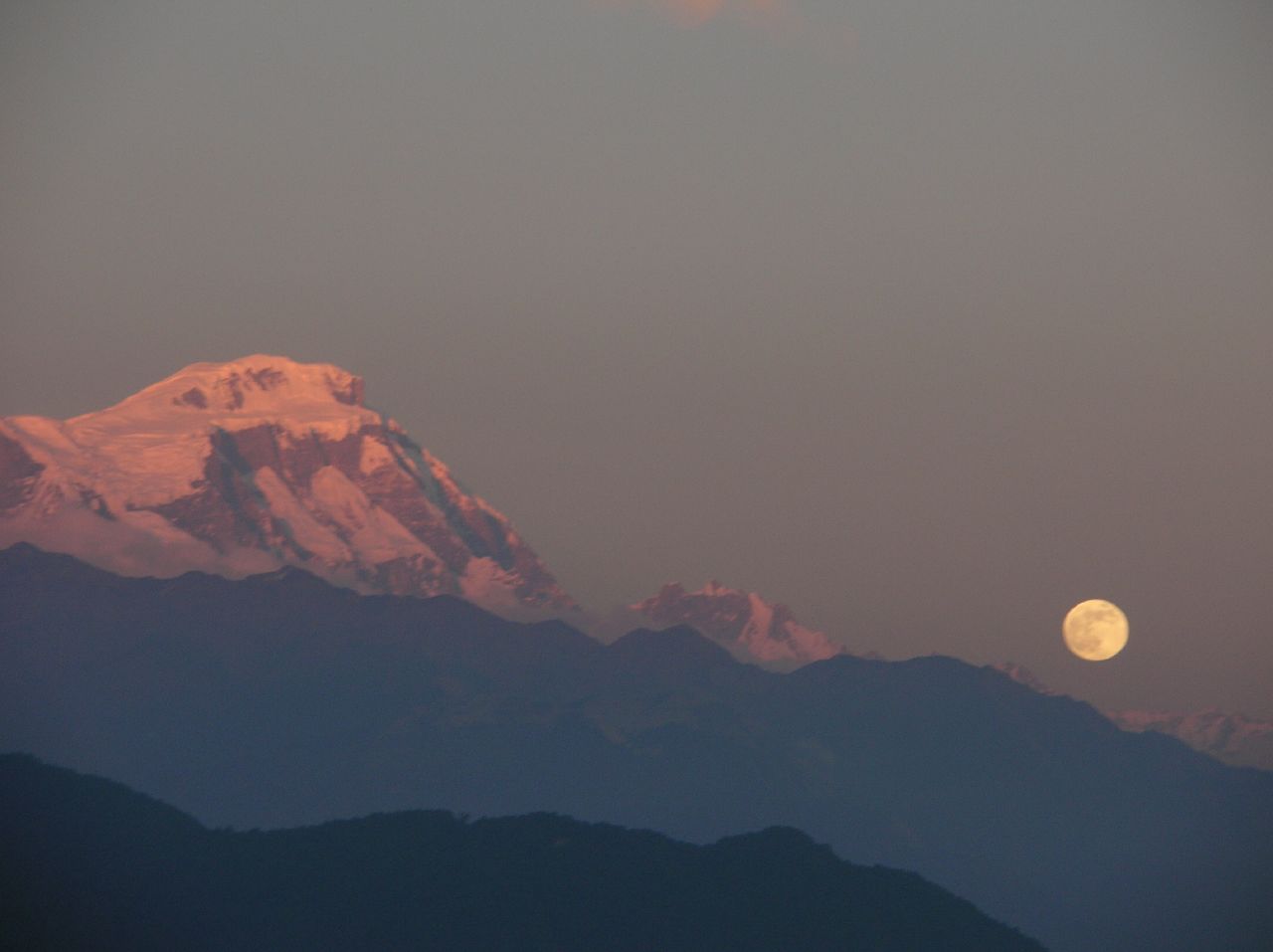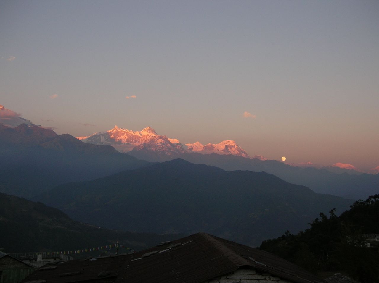 Le lodge est charmant et une grosse lune ronde se lève derrière les sommets, juste comme nous arrivons.
