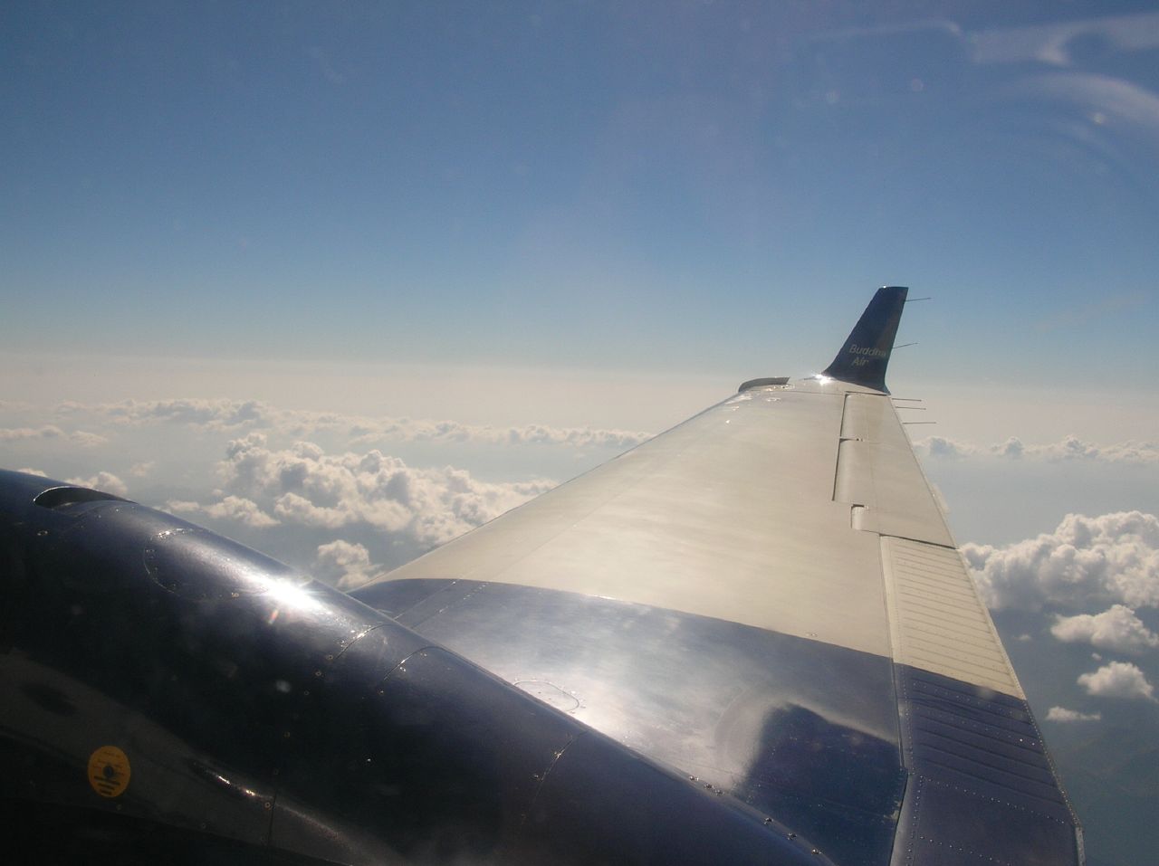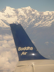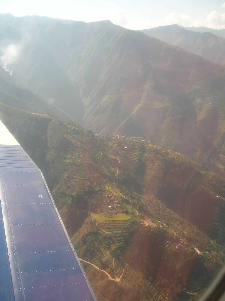 Le lendemain matin nous prenons l'avion à 11h55 pour Kathmandou, un court vol qui offre une vue superbe sur les montagnes en plus de nous faire gagner une journée, comparativement aux 5 heures minimum qu'il aurait fallu mettre en bus.