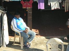 Nous marchons sur la rue et ramassons deux gâteaux à une German Bakery. Puis nous marchons jusqu'au parc qui longe le bord de l'eau. Disons que les déchets et les trois bancs au gros soleil incitent peu à la détente. Nous revenons ensuite vers la rue principale. Nous dînons sur la très belle terrasse du Moondance, à l'ombre, d'une salade niçoise et de momos végérariens suivis pour Martin (qui se porte décidément mieux!) d'un banana split et d'une Népal Ice.