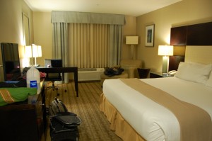 Holiday Inn Express & Suites à Las Vegas. La chambre, propre et neuve, est typique des autres Holiday Inn Express du voyage: le lit et les draps sont super confortables, il y a un frigo et un micro-onde. L'hôtel offre, comme les autres, un centre d'entraînement et le petit-déjeuner qui n'est pas mal. Il est très bien situé, avec beaucoup de commerces et de restos aux alentours et à dix minutes du centre de location de voiture et de l'aéroport.