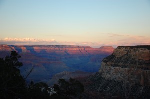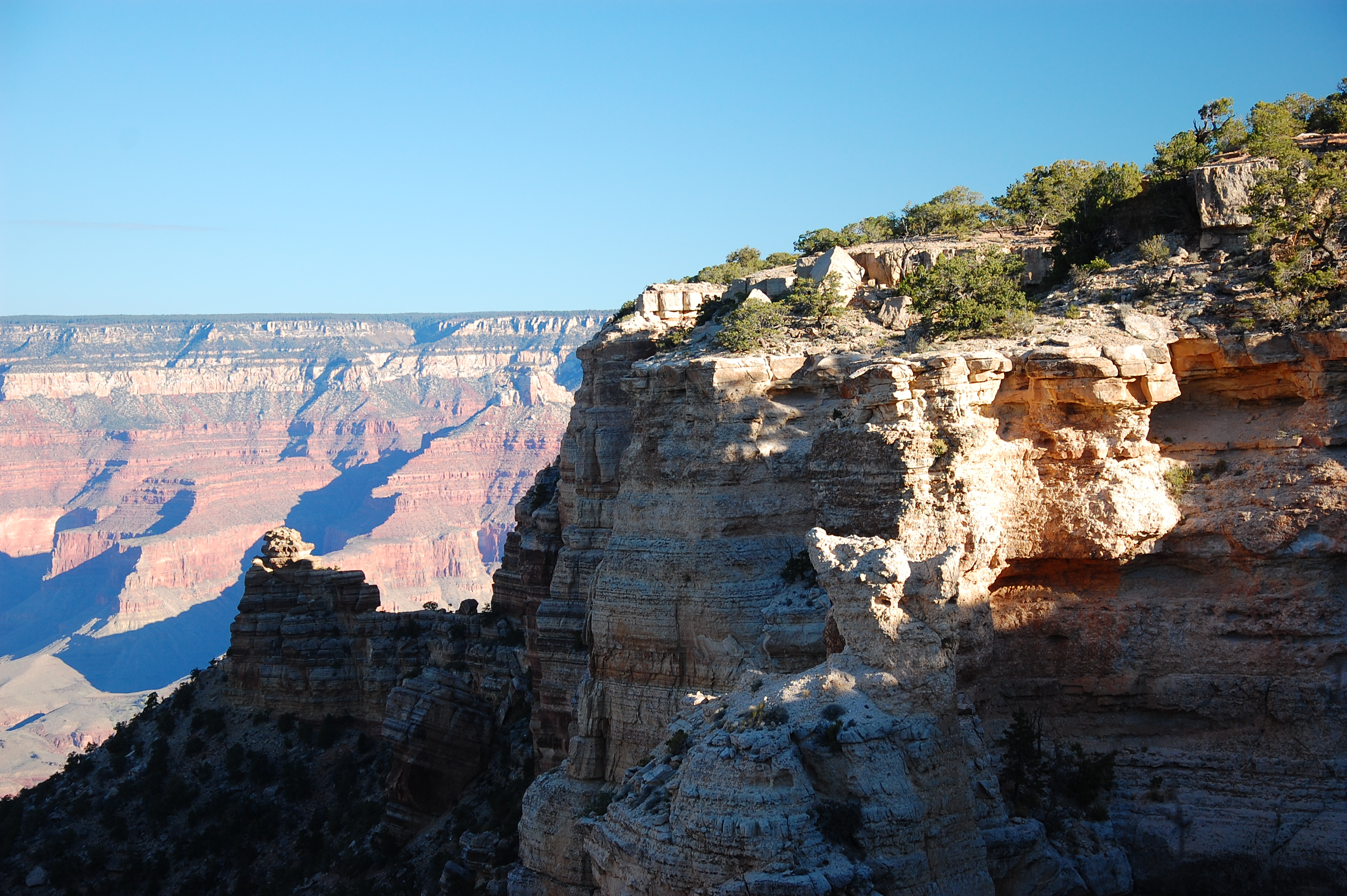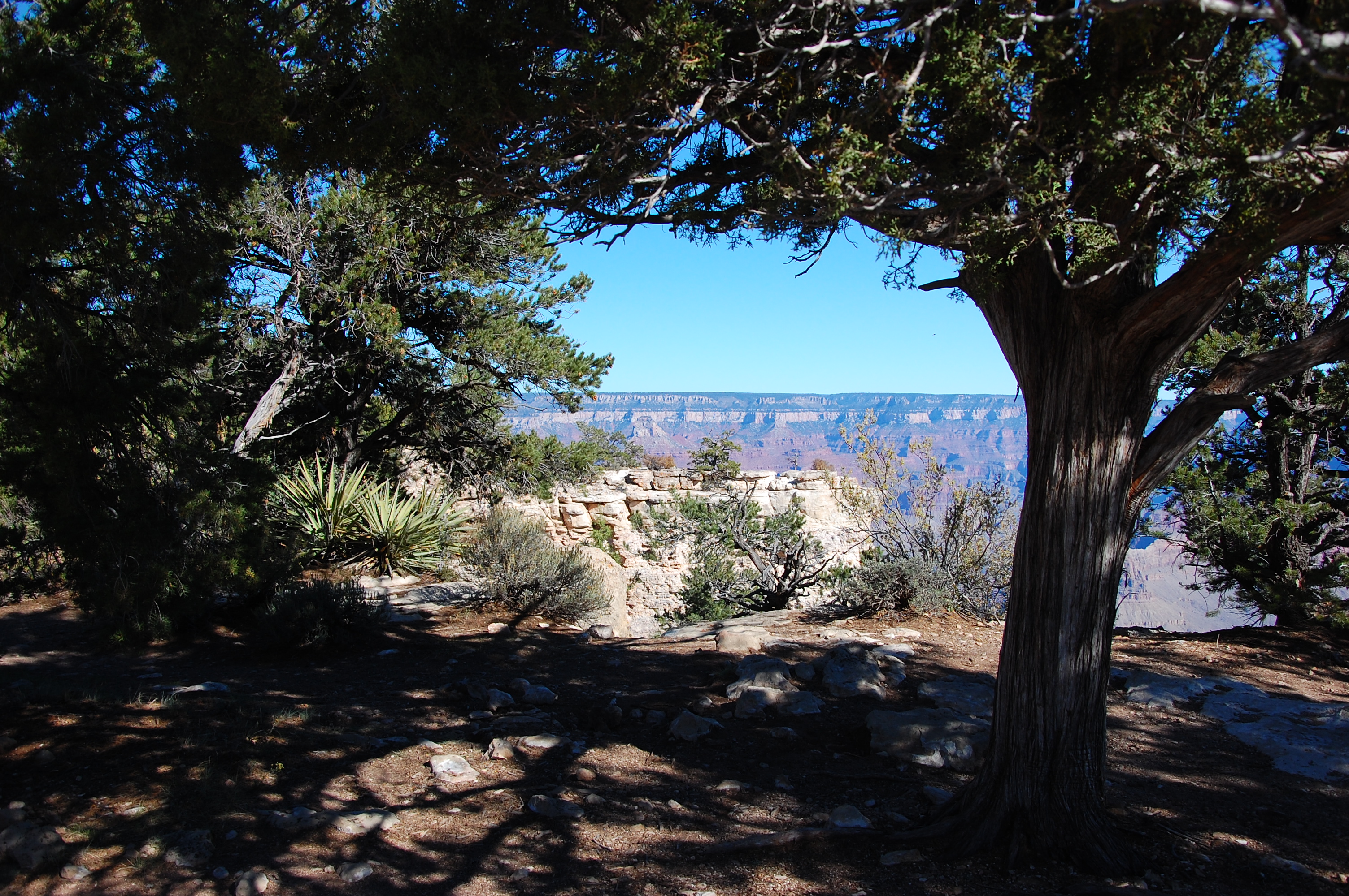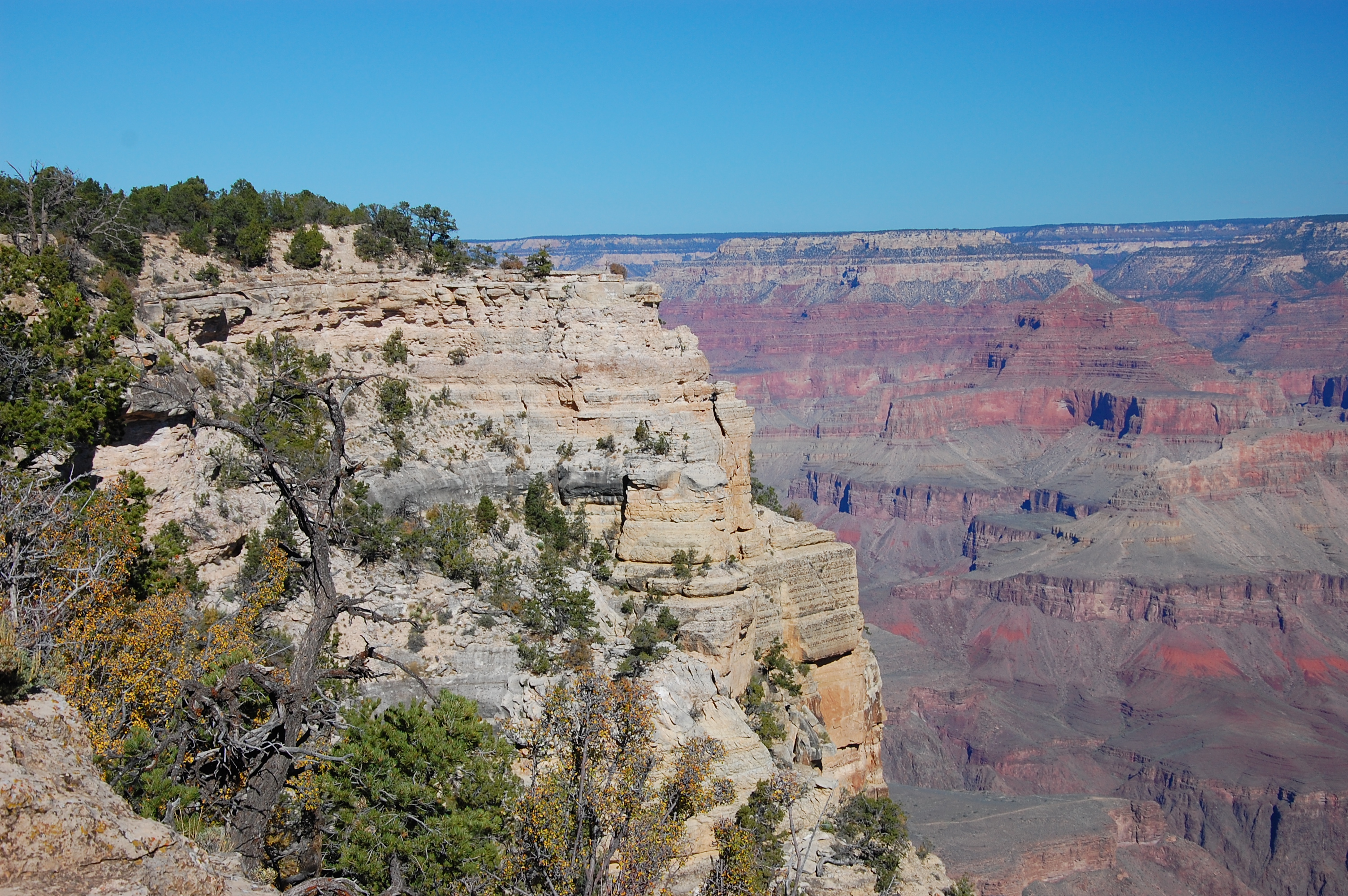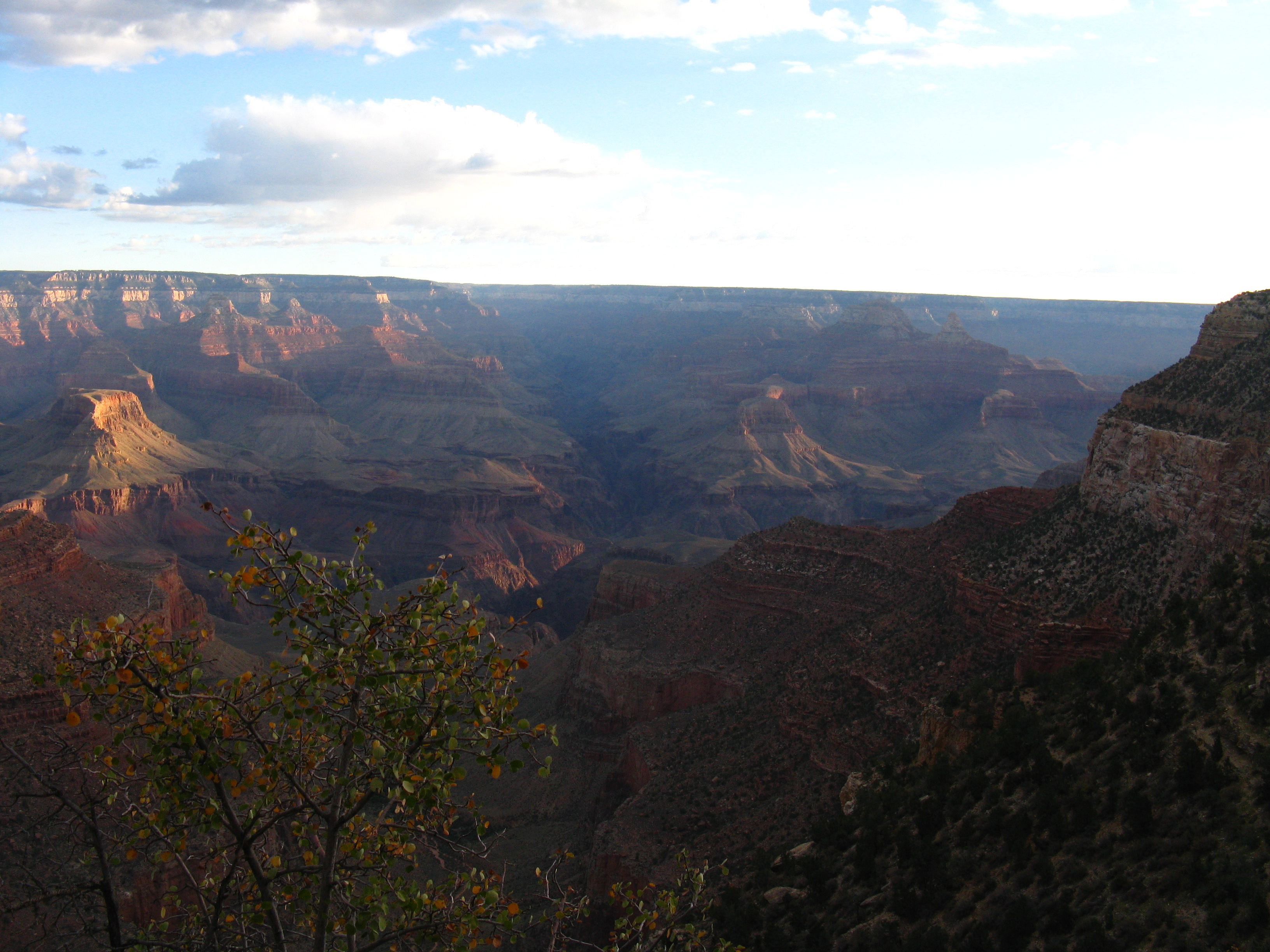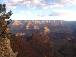 Vers 12h30 nous allons dîner au pizza pub du lodge Maswik, un lunch très ordinaire: pizza végétarienne avec quatre petits cubes de poivrons verts et deux misérables champignons mous coupés en 10 mini-morceaux, le tout enseveli sous un pouce de fromage fondu! Nous agrémentons le lunch de deux bières pression locales, puis reprenons le shuttle, direction le supermarché qui est vraiment super grand mais où il n'y a finalement pas tant de choses. On peut quand même y trouver quelques denrées: fruits, légumes, conserves, chips, alcool et des souvenirs de toutes sortes. Nous prenons de la bière et de la crème glacée que nous allons manger à l'ombre d'un pin ponderosa car le soleil est vraiment brûlant. Nous relaxons un peu à la chambre en attendant de ressortir pour profiter des derniers rayons qui descendent sur le grand canyon avec tout le monde, sur la promenade derrière les lodges, où la vue est franchement tout aussi belle qu'ailleurs sur les sentiers.