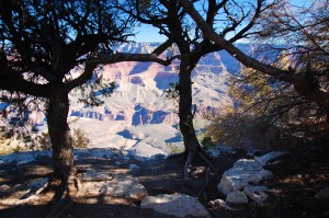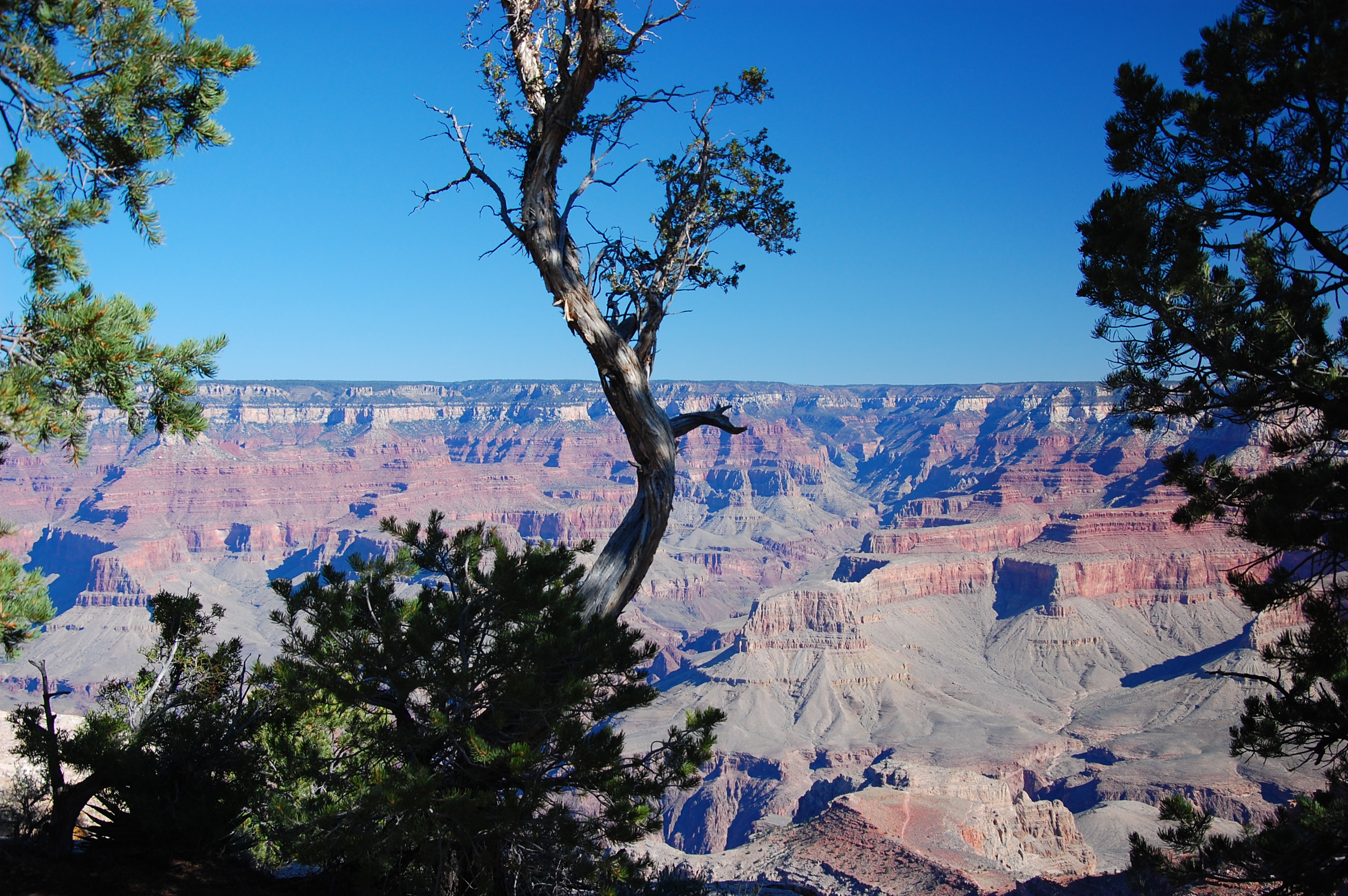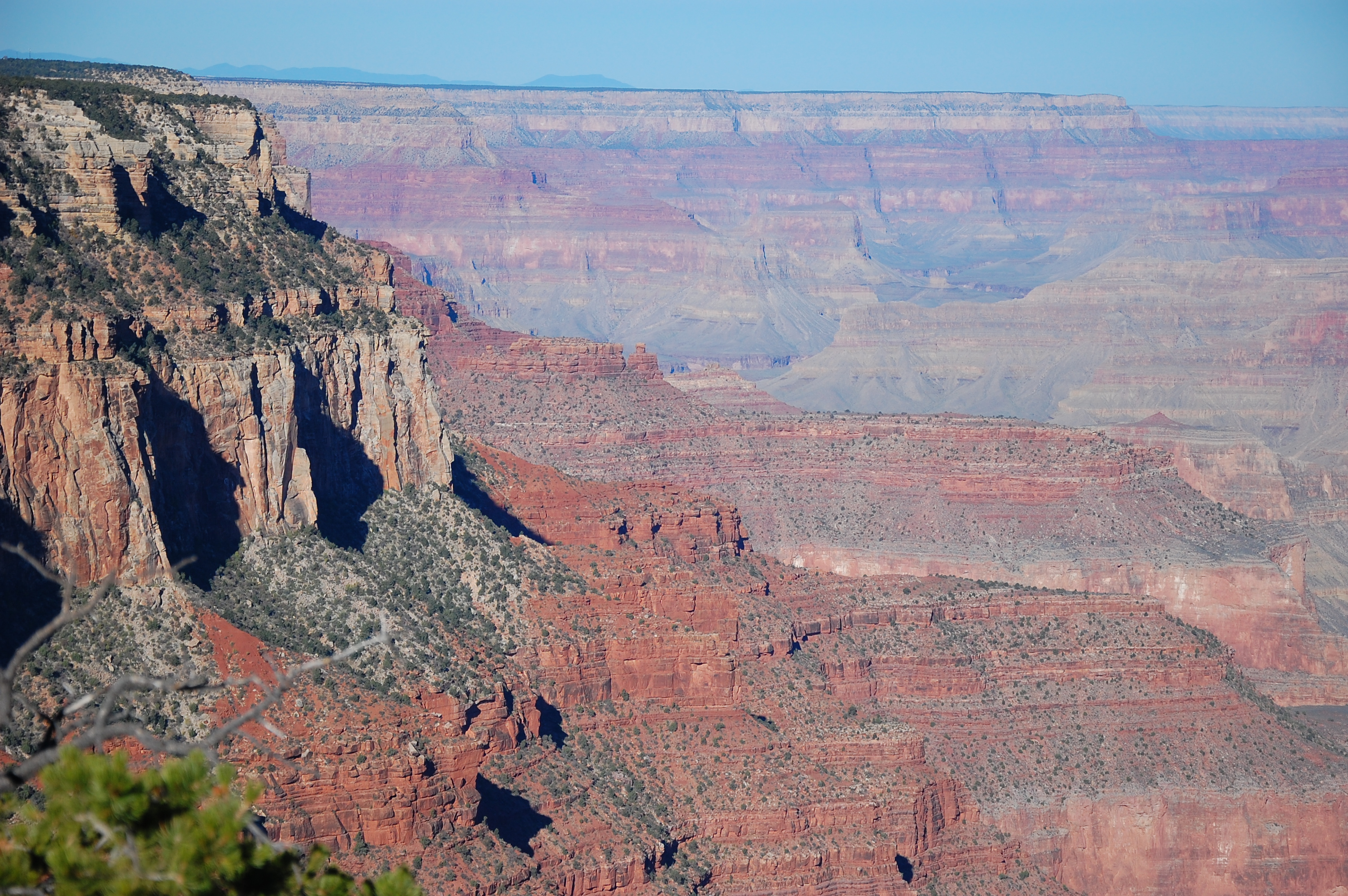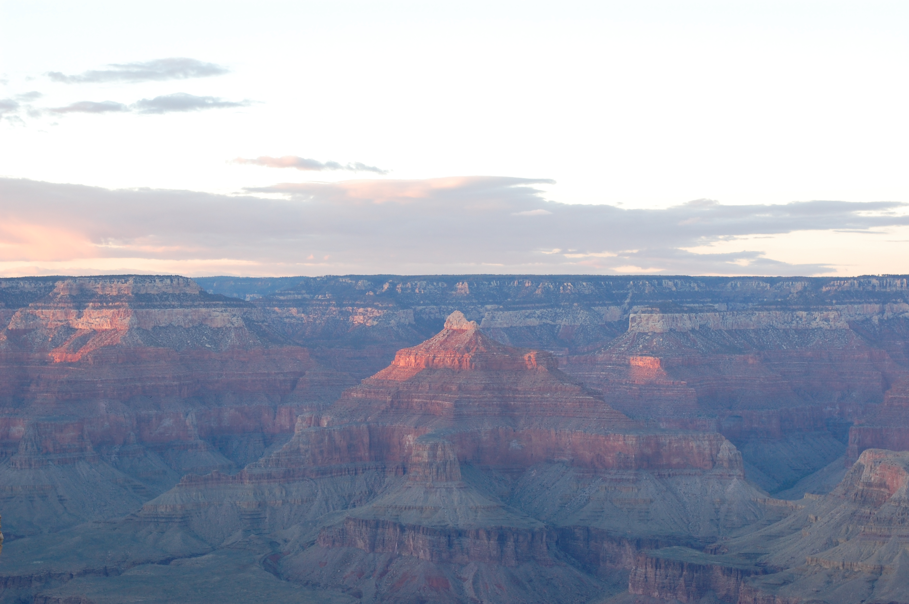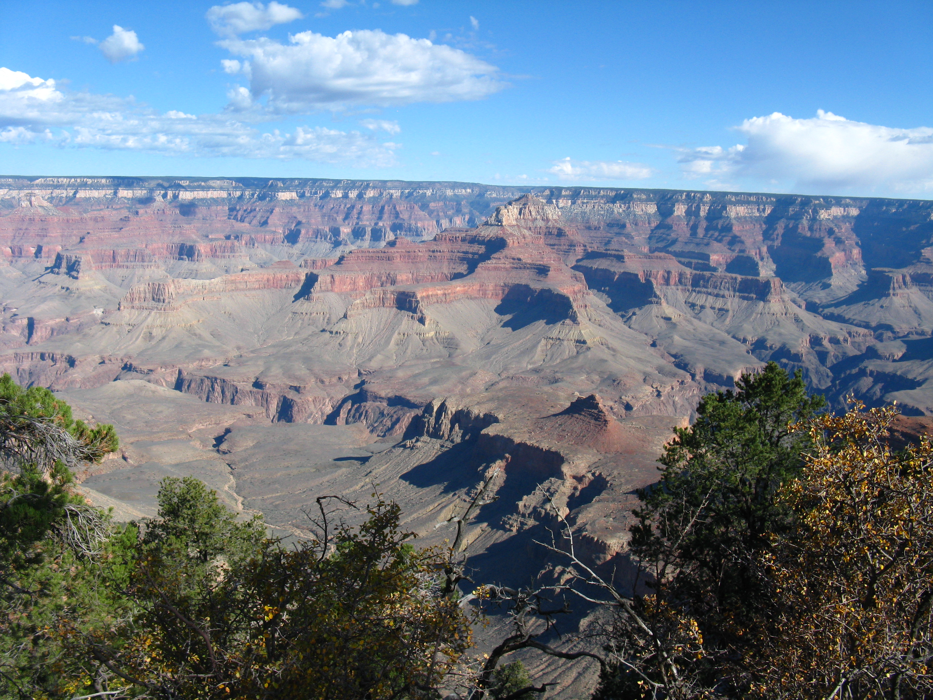 Vers 12h30 nous allons dîner au pizza pub du lodge Maswik, un lunch très ordinaire: pizza végétarienne avec quatre petits cubes de poivrons verts et deux misérables champignons mous coupés en 10 mini-morceaux, le tout enseveli sous un pouce de fromage fondu! Nous agrémentons le lunch de deux bières pression locales, puis reprenons le shuttle, direction le supermarché qui est vraiment super grand mais où il n'y a finalement pas tant de choses. On peut quand même y trouver quelques denrées: fruits, légumes, conserves, chips, alcool et des souvenirs de toutes sortes. Nous prenons de la bière et de la crème glacée que nous allons manger à l'ombre d'un pin ponderosa car le soleil est vraiment brûlant. Nous relaxons un peu à la chambre en attendant de ressortir pour profiter des derniers rayons qui descendent sur le grand canyon avec tout le monde, sur la promenade derrière les lodges, où la vue est franchement tout aussi belle qu'ailleurs sur les sentiers.