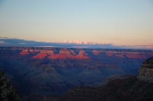 Arrivés au village, nous décidons de souper au restaurant du Bright Angel lodge. Le rapport qualité-prix est beaucoup meilleur qu'à la cafétéria Yavapai (deux soupes, deux plats de pâtes et deux bières pour 40$) et c'est ravis de notre journée que nous reprenons la navette pour rentrer au lodge. La journée a été bien remplie, nous avons les cuisses un peu raides mais faisons quand même les quelques pas supplémentaires pour nous rendre au lobby du lodge afin d'accéder au wifi auquel nous n'avons pas accès de notre chambre.