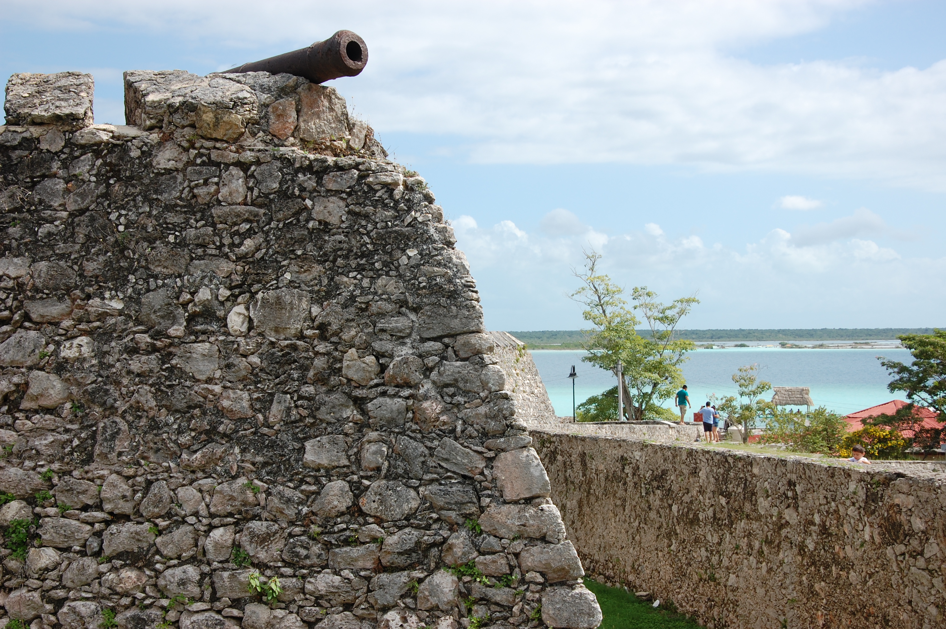 Revenus au quai, nous nous changeons dans la voiture puis cherchons un endroit pour luncher. Nous trouvons un resto qui ouvre dans une demi-heure et en attendant, nous lézardons sur la plaza. Nous ne pouvons pas visiter le fuerte qui est fermé le lundi, mais nous pouvons quand même en longer les murs. Nous dînons sur une terrasse qui offre une belle vue sur la lagune. De retour à notre cabana, nous passons l'après-midi à nous baigner et à rêvasser sur le quai qui borde le terrain.