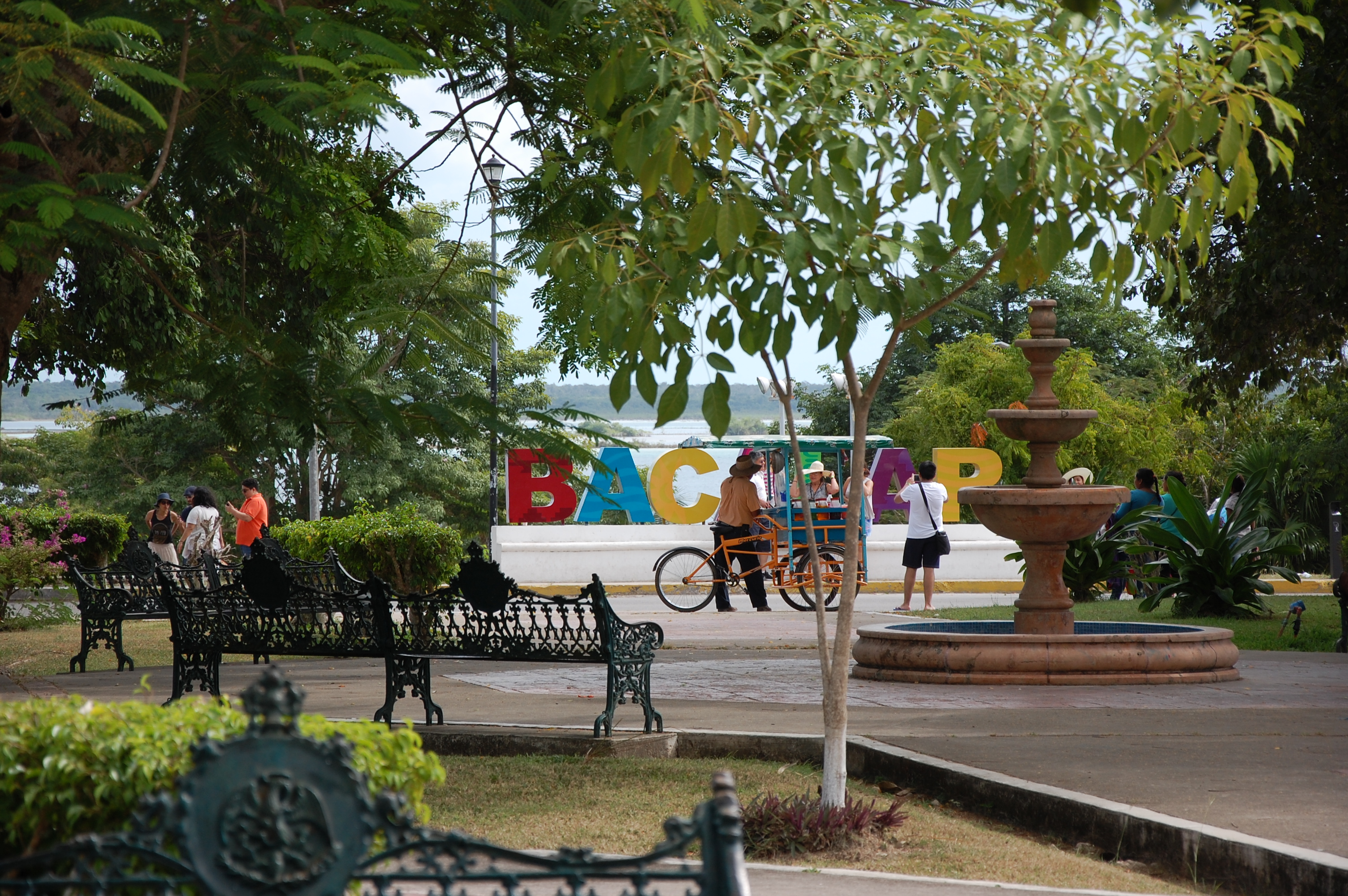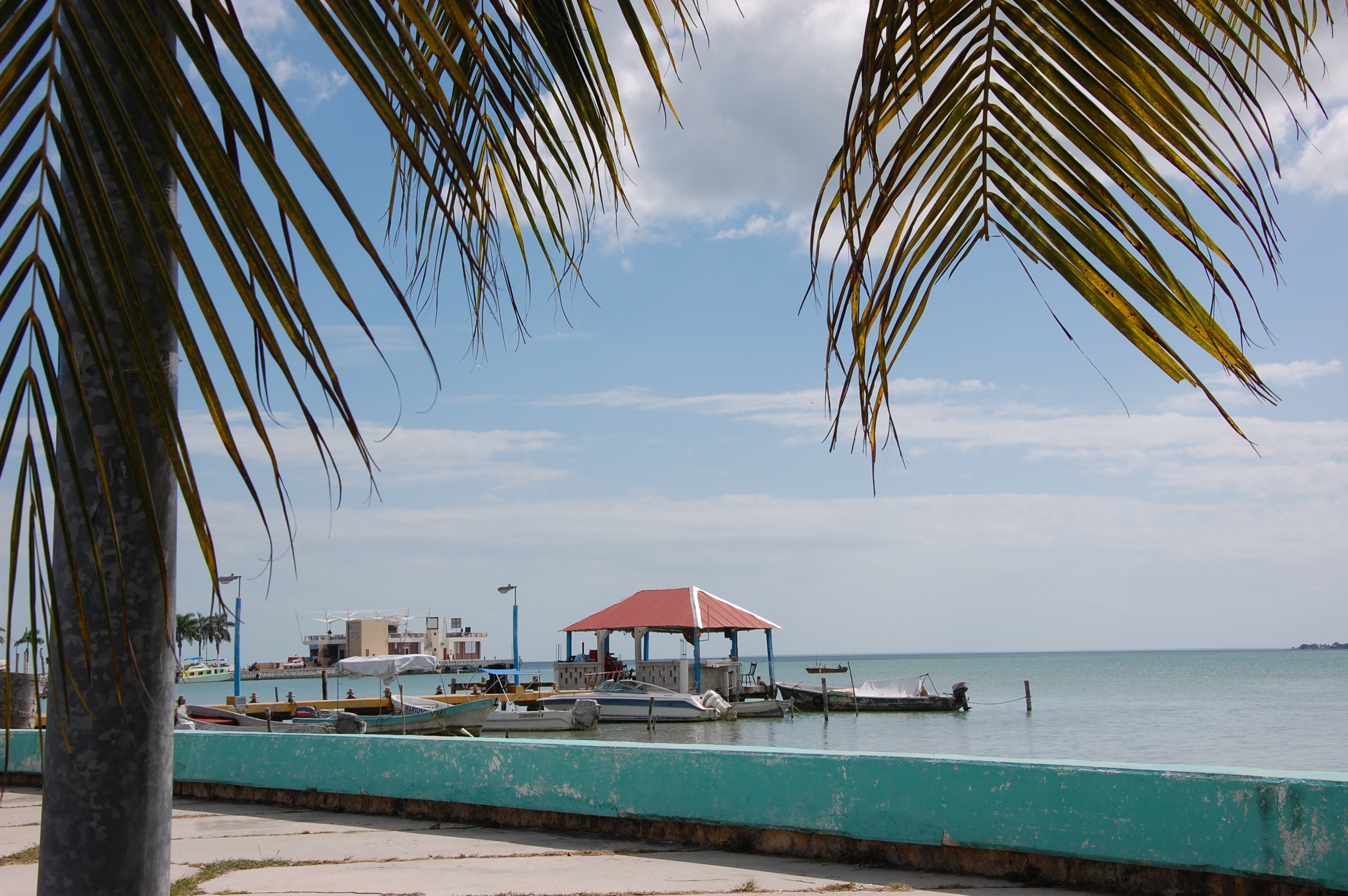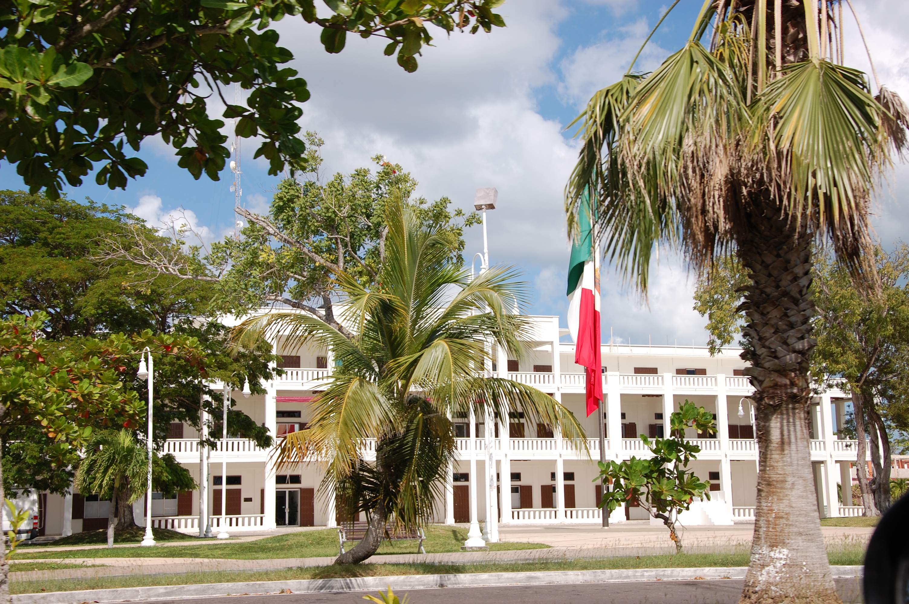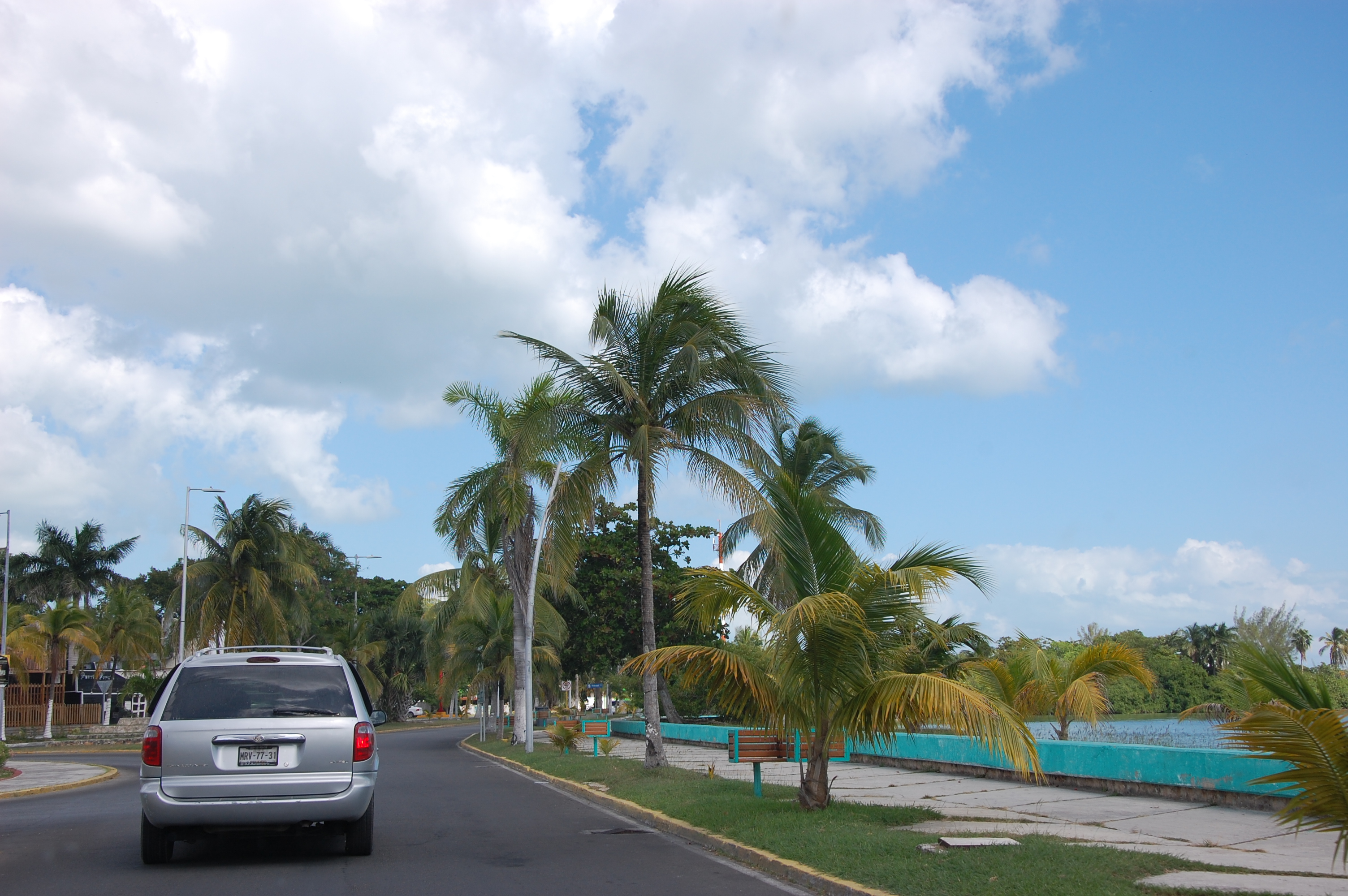Après le copieux déjeuner préparé par Lucy à Casa Ka'an, nous prenons la route en passant par Xpujil, qui ne nous fait pas tellement d'effet! Nous bien contents d'avoir logé en dehors de la petite bourgade finalement. Le trajet est sans encombre et, comme il est tôt, nous décidons de faire un petit détour par Chetumal, la capitale de l'état, pour voir de quoi ça a l'air. C'est surprenant: un beau maleçon longe les eaux chatoyantes et turquoises de la mer des caraibes qui borde la ville. Comme c'est dimanche, et à l'heure du midi, les locaux picniquent dans les parcs, l'ambiance est très relaxe même si c'est une grande ville. Nous longeons plusieurs beaux bâtiments: le museo de la cultura maya, l'université, le "palais" du gouverneur de l'état.