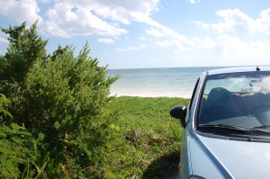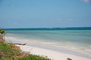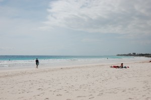 Après avoir déjeuné, nous partons vers la plage publique, à quatre kilomètres de la ville. Il n'y a pas beaucoup d'indications, nous nous stationnons en bordure de la route où nous croyons apercevoir un sentier qui nous permette d'accéder à la plage. Après quelques mètres, nous arrivons effectivement à la plage publique, qui n'est vraiment pas très occupée et splendide. Le sable est doux et propre, les vagues prennent toutes sortes de teintes de bleu et de turquoise, il n'y a pas de vendeurs ni de commerce. Nous sommes agréablement surpris. Nous nous baignons pendant 1h30, la mer est chaude et les vagues ne sont pas trop grosses, après quoi nous n'avons d'autre choix que d'aller nous mettre à l'abri en nous questionnant sur les capacités d'endurance de ces gens qui passent toute la journée exposés sur la plage!