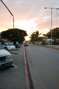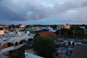 La route vers Tulum est sans histoire. Nous avions entendu dire que la ville était un véritable cirque touristique, ce n'est pas l'impression que nous en avons. Sur la rue principale, il y a effectivement beaucoup de restaurants et de boutiques, mais l'ensemble reste quand même très mexicain et sur les rues derrière la principale on ne voit pas la différence avec d'autres villes mexicaines. Nous avons un hôtel en ville, car les prix des hôtels sur la plage nous paraissaient prohibitifs. Nous sortons souper à quelques pas d'où nous logeons, sur une sympatique terrasse où des mariachis et autres musiciens de rue viennent mettre de l'ambiance, bien aidés par les margaritas limon!