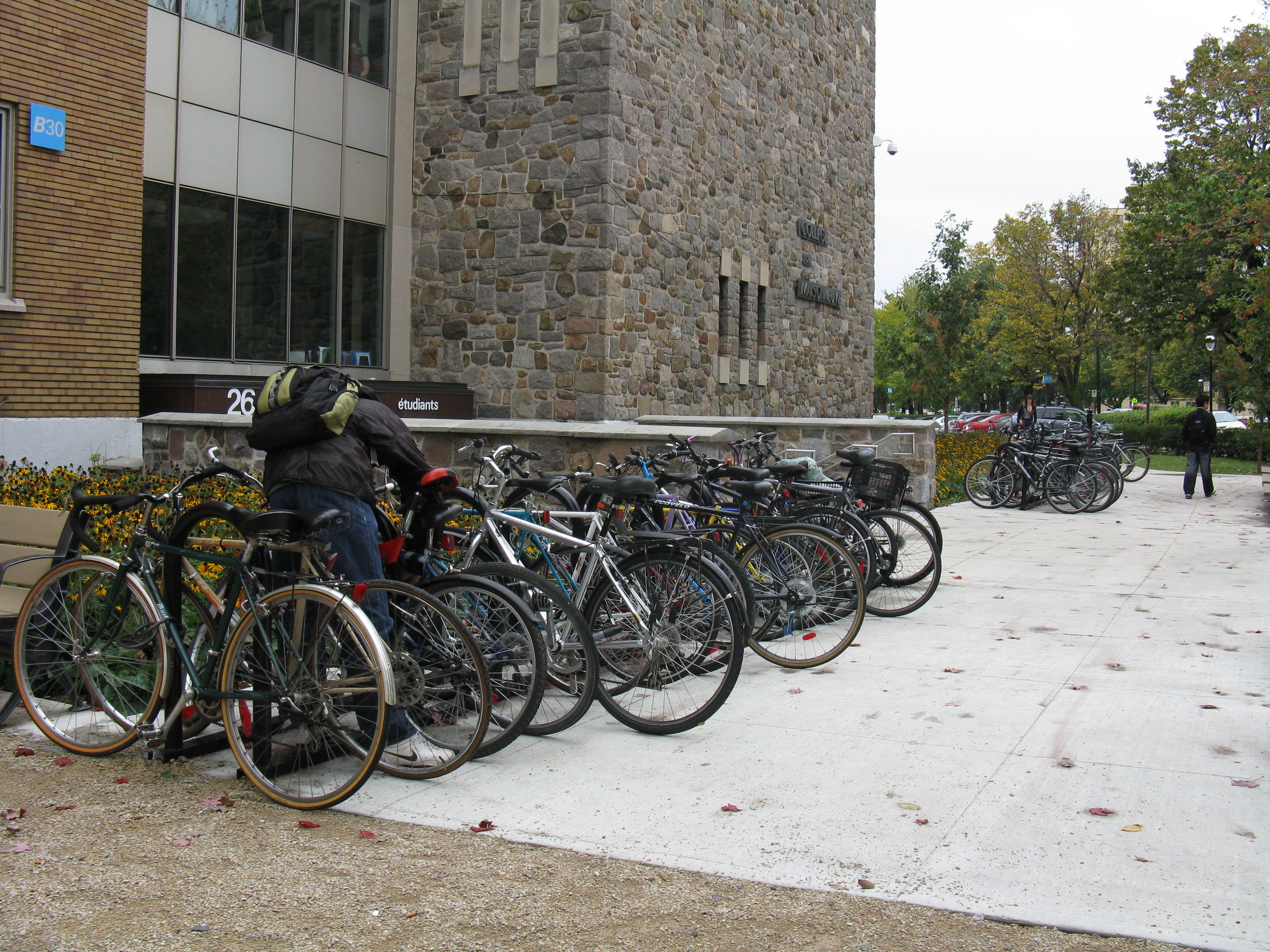 vue des supports à vélo médiocres et remplis à craquer quand j’arrive pour le cours de 14h, le lundi …