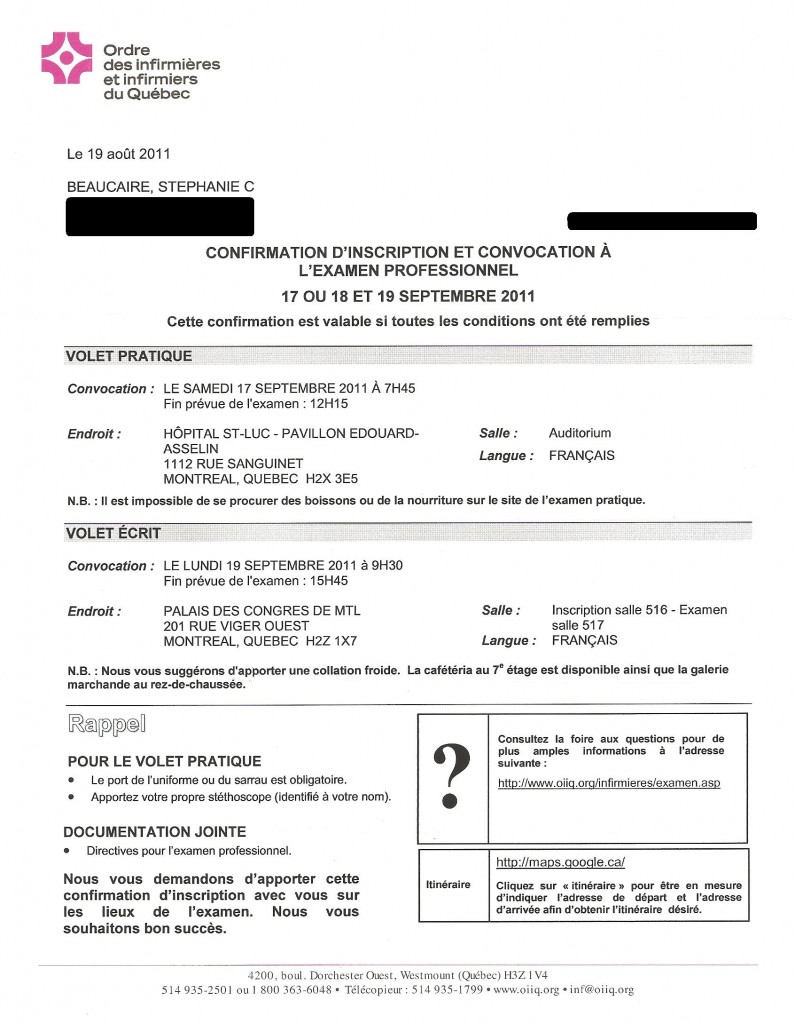 Ça y’est! La date officielle de l’événement stresseur par excellence est connue. Ou plutôt les dates. Je connaissais déjà la date de l’examen théorique, mais on dirait que de recevoir une lettre sur laquelle sont indiqués tous les détails me rappelle douloureusement que je n’ai pas vraiment étudié de l’été et que je ne serai vraisemblablement pas prête, en tout cas pas comme je le voudrais. Mes deux prochaines fins de semaines étant occupées par des activités qui n’ont strictement rien à voir avec l’étude, disons qu’un sentiment d’urgence commence à poindre!