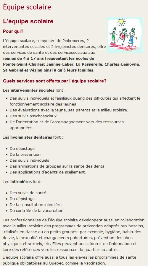 Enfin. Cela a mis un peu de stress dans mon été (que serais-je sans?!) et finalement j’ai décroché un stage en santé scolaire à l’école Charlemoyne rattachée à la Clinique communautaire de Pointe-St-Charles.